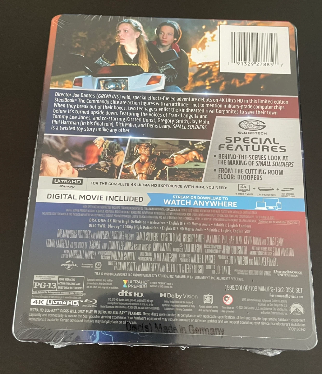Selling a brand new, sealed copy of Small Soldiers in 4K Ultra HD and Blu-ray, in a limited edition Steelbook case! It also includes a digital code. A great addition to any movie collection! Brand New.