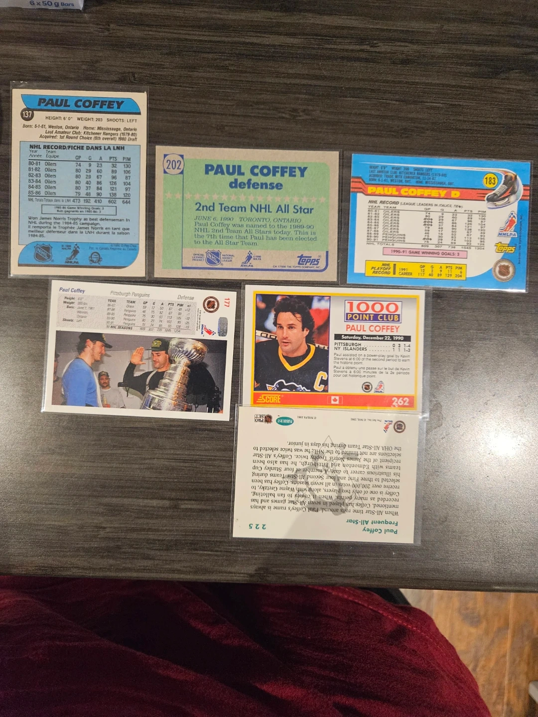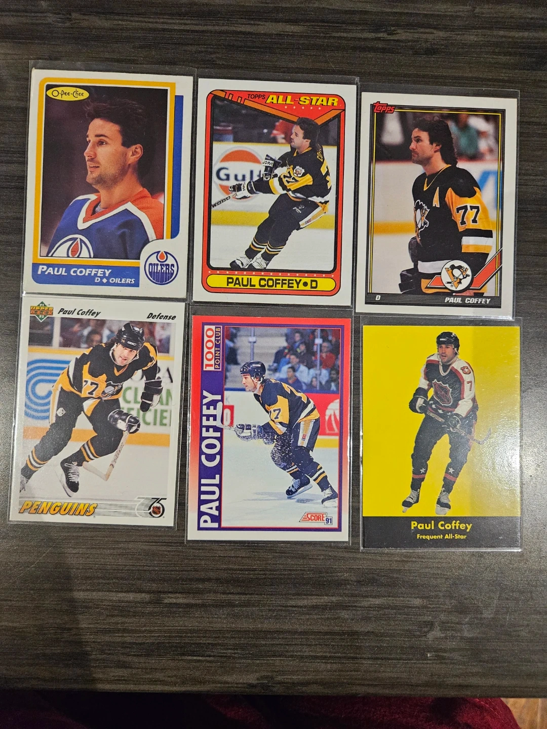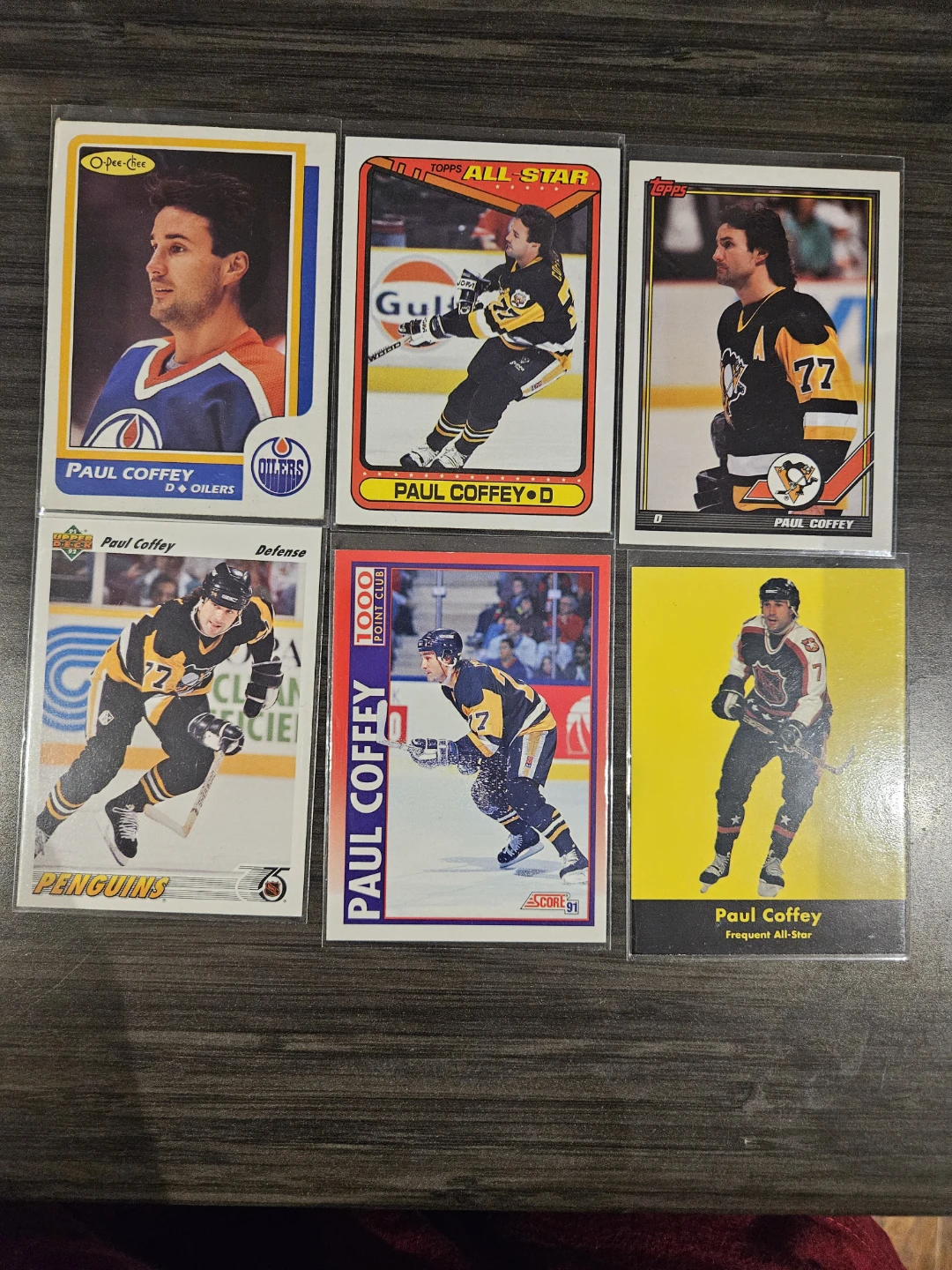 Selling a collection of vintage Paul Coffey hockey cards! These cards feature Coffey during his time with the Oilers and Penguins. Great for any hockey card collector!