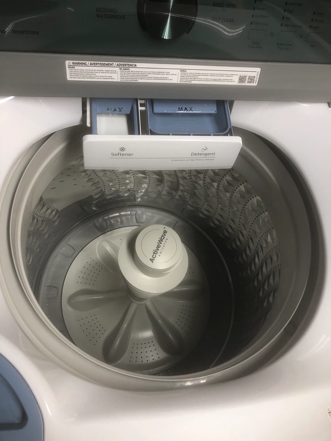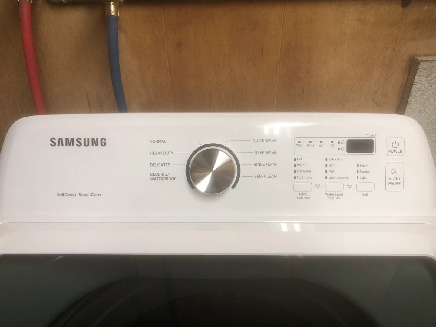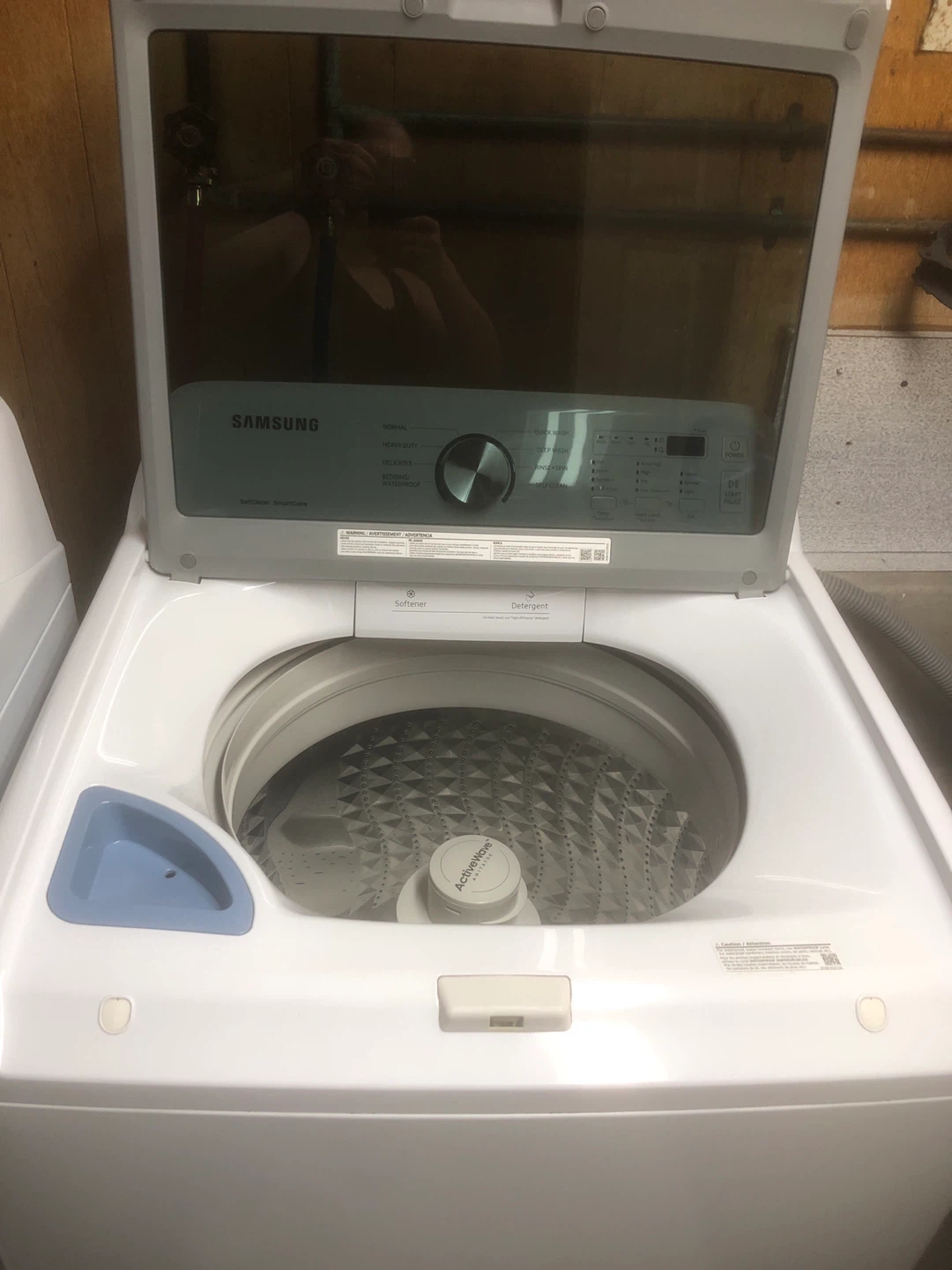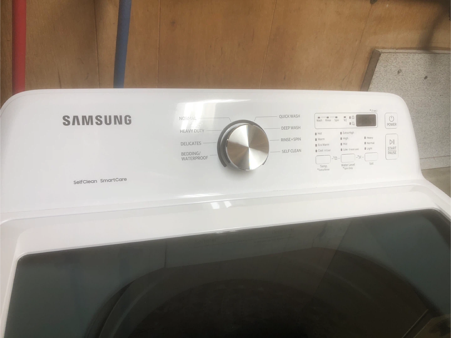 Selling a Samsung top load washer in great condition. It's white and features several wash cycles including normal, heavy duty, delicates, and a quick wash setting. It also has a self-clean function for easy maintenance. A reliable appliance for your laundry needs!