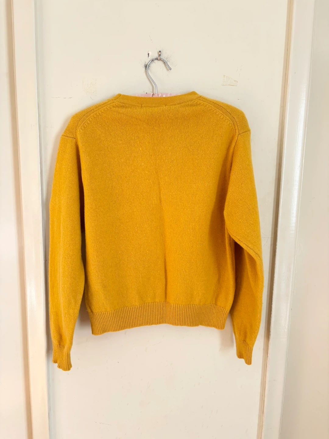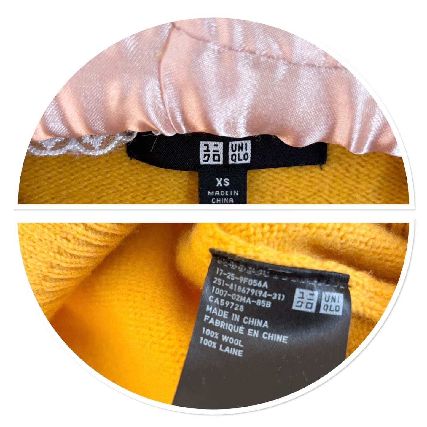 Here's a cozy Uniqlo sweater made from 100% wool. It's a size XS and perfect for layering or wearing on its own. The colour is a lovely mustard yellow!
