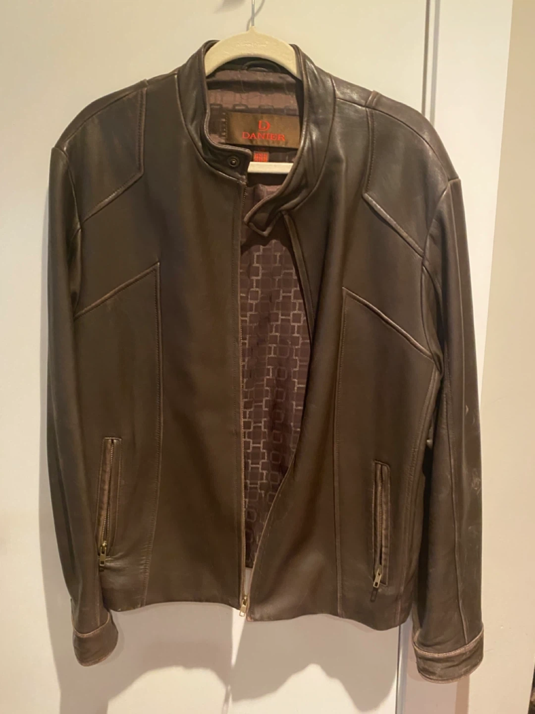 Selling a Danier leather jacket in size L. It's a stylish brown colour and in great condition. Perfect for adding a touch of class to your wardrobe!