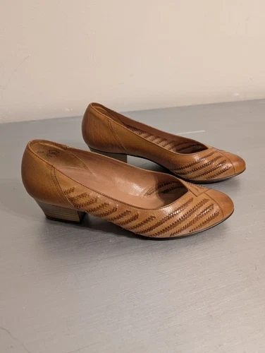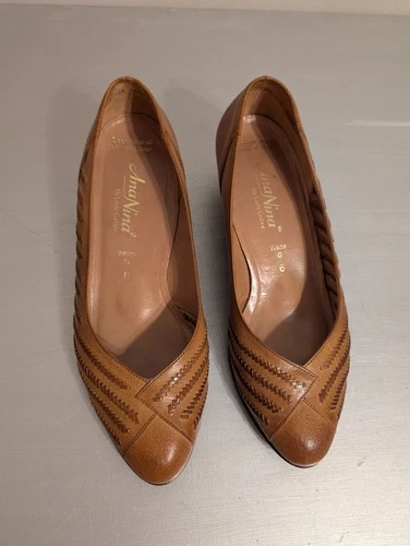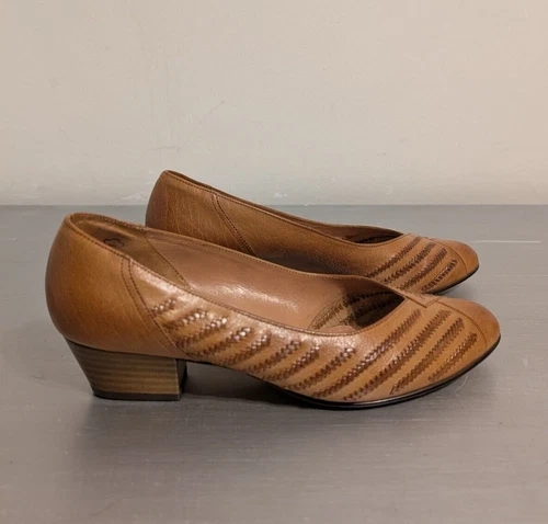 Ana Nina by Lady Gabor Leather Pumps, Size 6 (fits like US 9). These classic pumps feature genuine brown leather (Echt Leder) with a stylish patterned design and a low block heel 1.5" for comfort. Designed with a wide fit (Weite G), they are perfect for adding elegance to both casual and formal outfits. Crafted in Germany, these shoes highlight the quality and craftsmanship associated with the Gabor brand. Feel free to message if you have any questions!