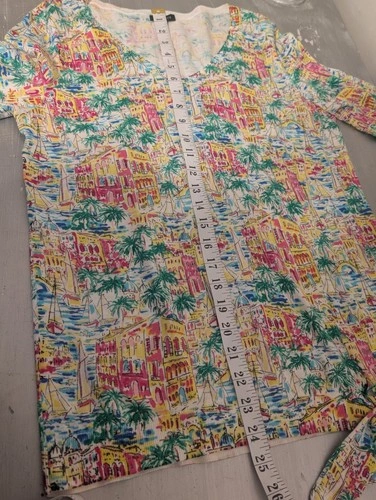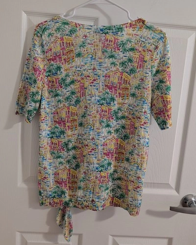 TALBOTS Sweater Palm Trees Cityscape Sailboats Size S