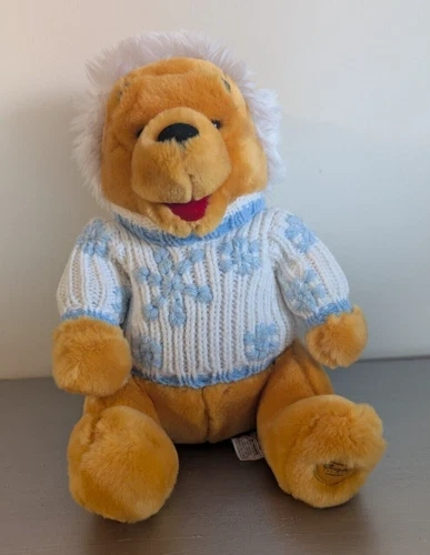 Disney Store Winnie the Pooh Plush Animal White Blue Winter Swea