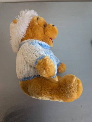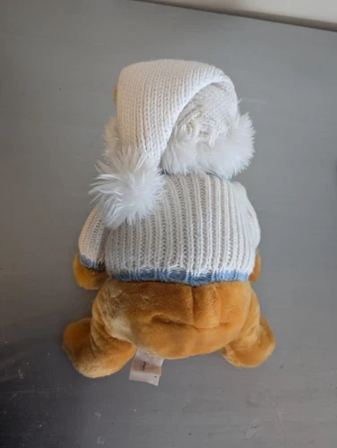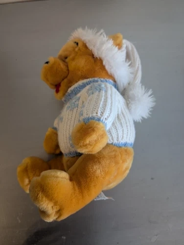 Disney Store Winnie the Pooh Plush Animal White and Blue Winter Sweater and Hat 12" Tall Sitting