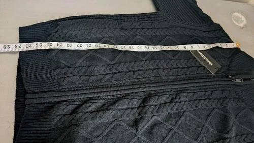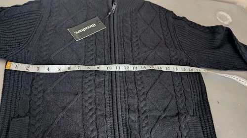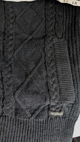 Wrap yourself in the cozy comfort of the Threadbare Navy Cardigan Sweater, tailored for those who appreciate a balance of warmth and style. A versatile addition to any men's wardrobe, this regular-size medium sweater is designed to fit seamlessly into both casual and more polished looks.