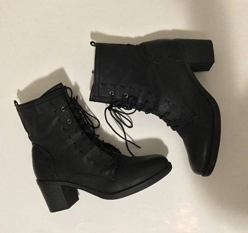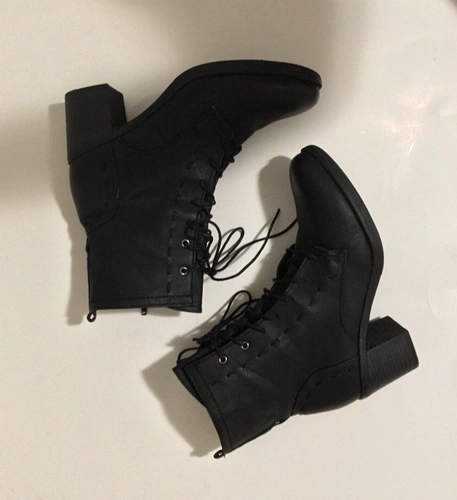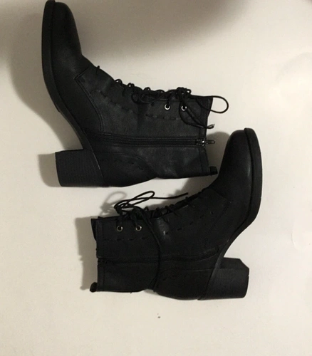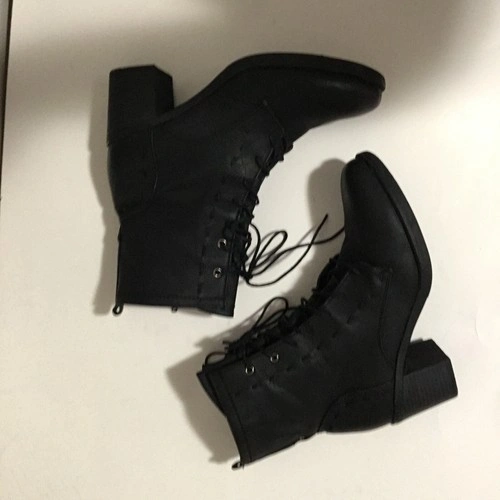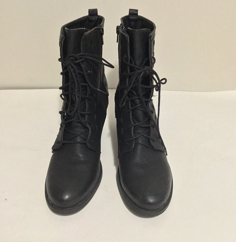 Harriet Boots by JUSTFAB are stylish black lace-up boots that are a must-have for any fashion-forward wardrobe. Crafted with high-quality man-made materials, these boots offer durability and comfort without compromising style. The boots feature a chunky heel and a sleek, minimalist design, making them versatile for various outfits. The side zipper allows for easy wear, while the lace-up front adds a touch of edge. Perfect for casual and semi-formal occasions, these boots will effortlessly elevate any look. Condition: pre-owned, very good condition. Please note: no box included. Size: 10 US