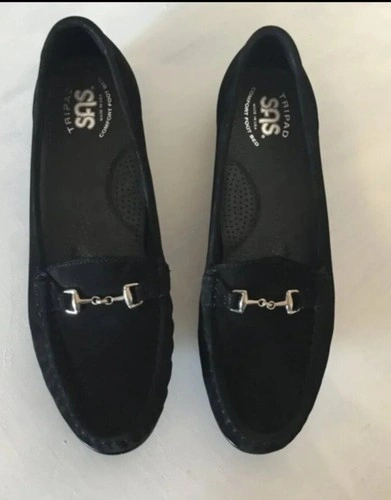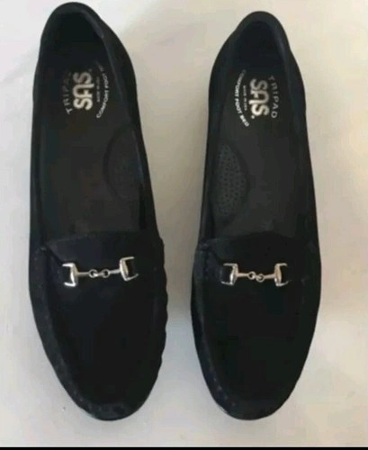SAS Metro Black Suede Loafers Women’s Slip-on Shoes with Silver Bit Size 8 Narrow
