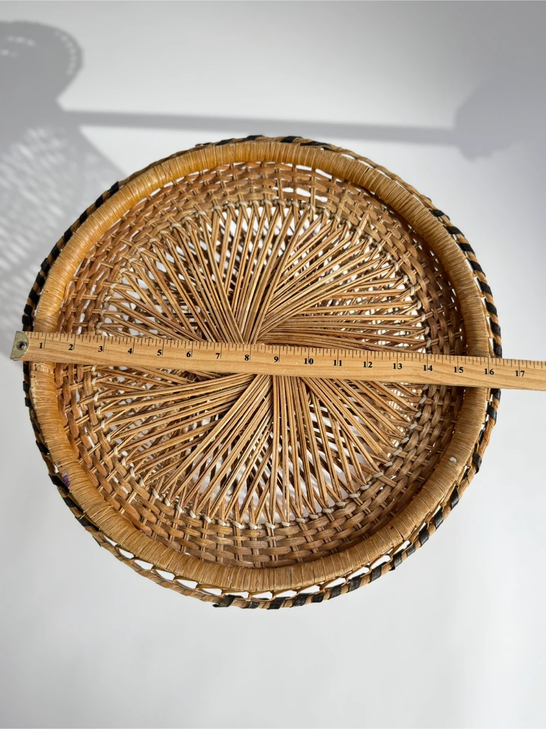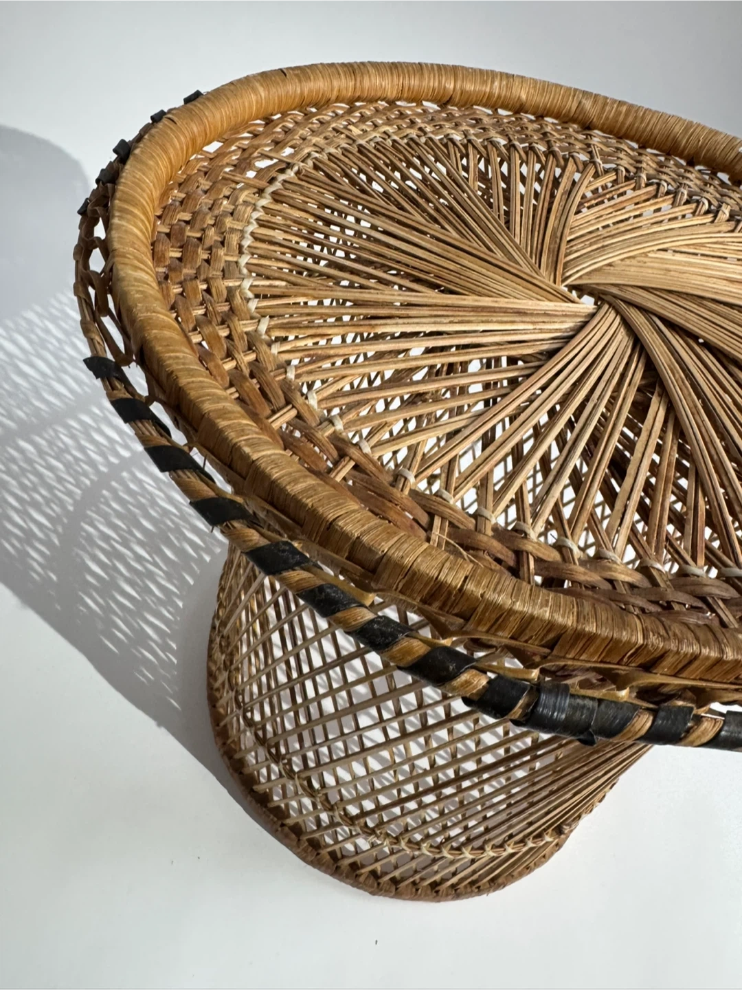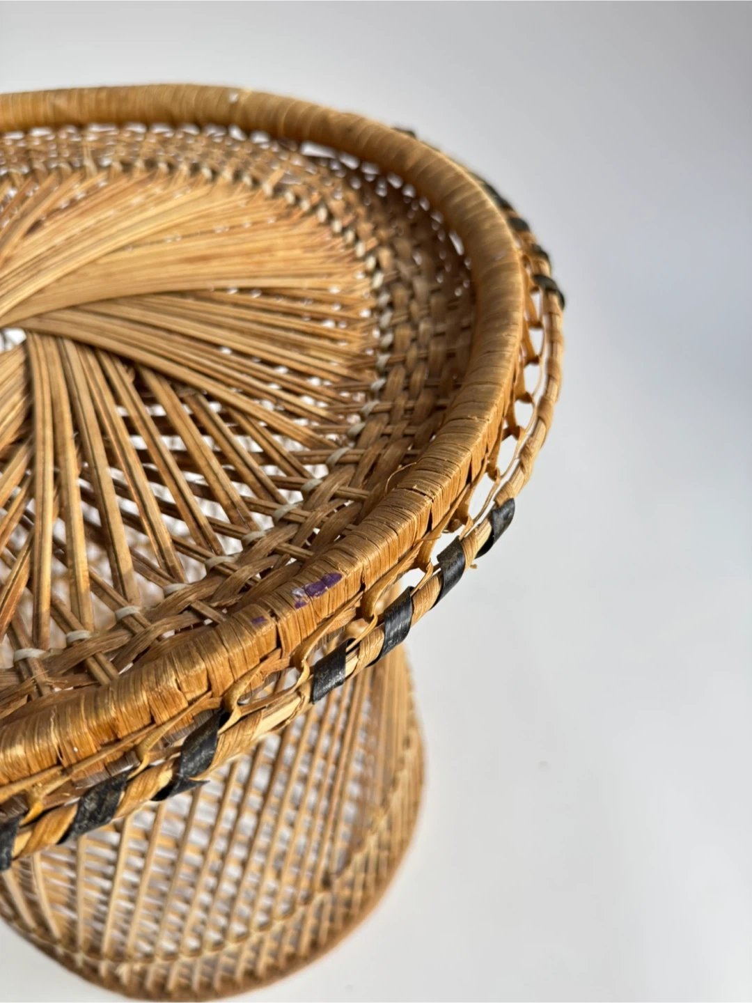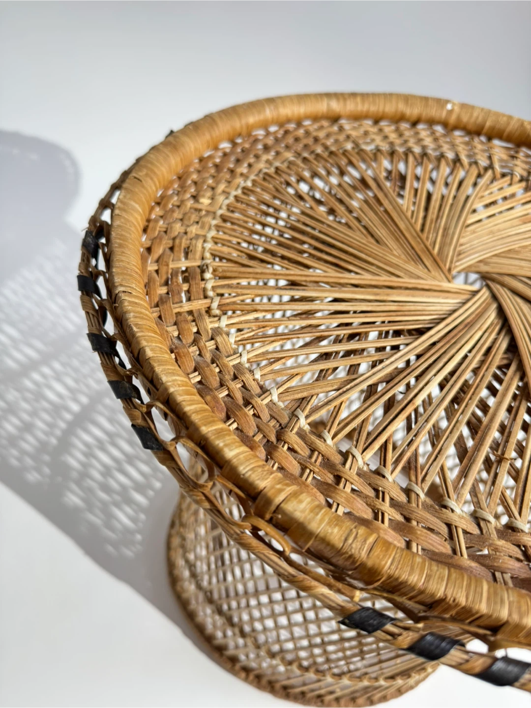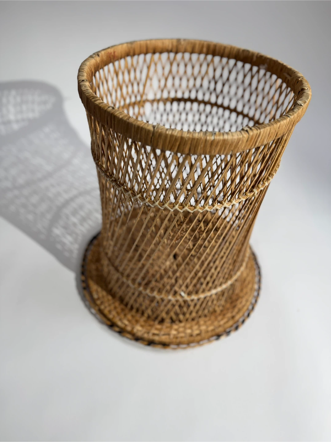 Fabulous vintage woven rattan drum side table. Ready to use. Ideal side table, plant stand or accent table or pair with peacock chair for full boho vibes…Perfect in a living room or bedroom.