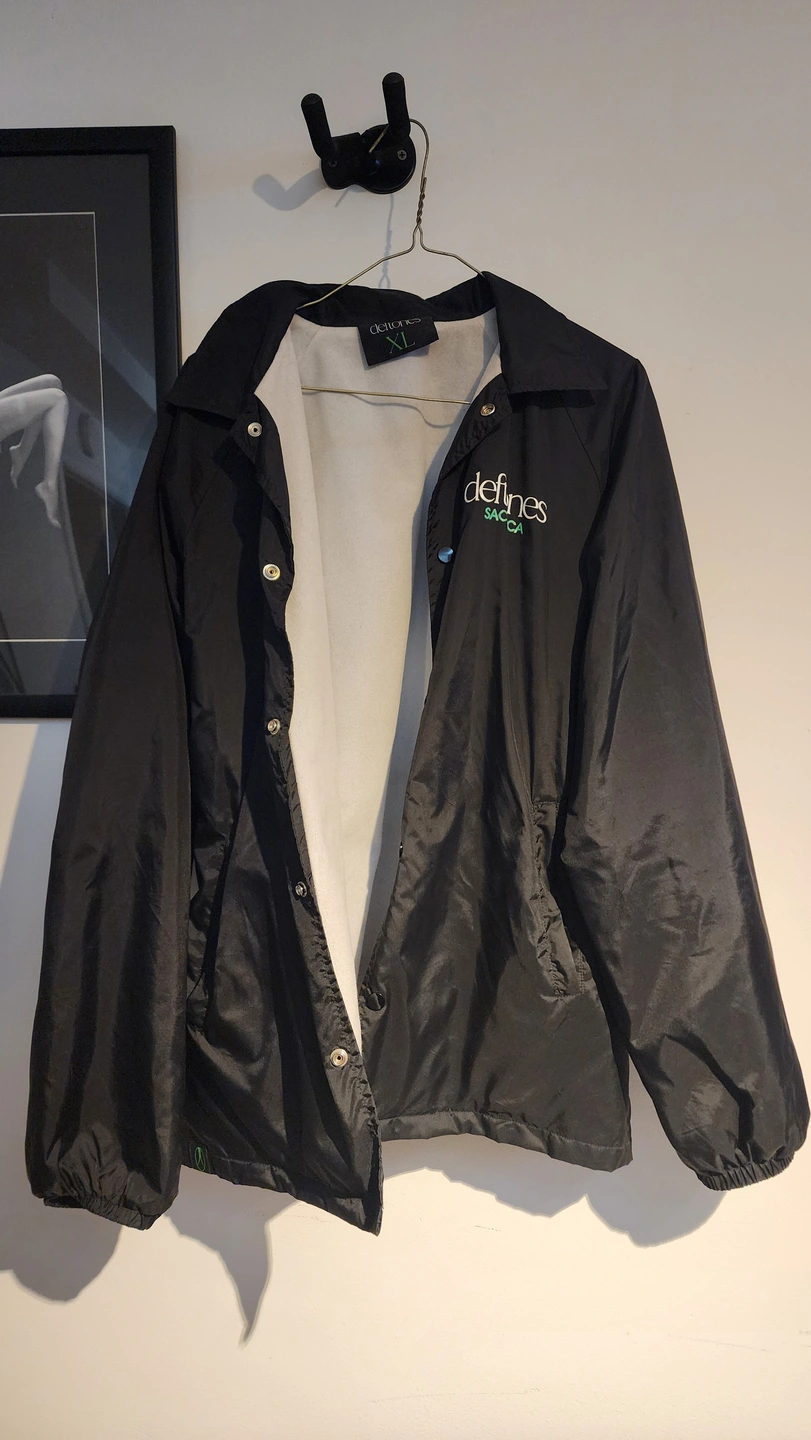 In perfect condition, windbreaker worn a handful of times. Vinyl record is sealed and brand new with special box.
