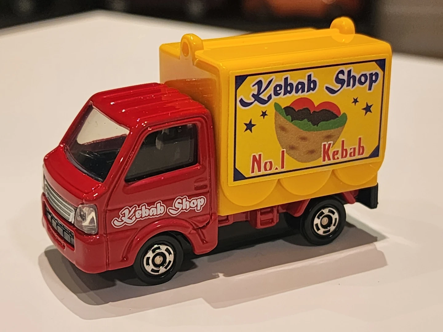 Selling a Tomica Suzuki Carry Mobile Catering Truck, Kebab Shop version! It's in great shape and would be a fun addition to any collection. It's a 1/55 scale model.