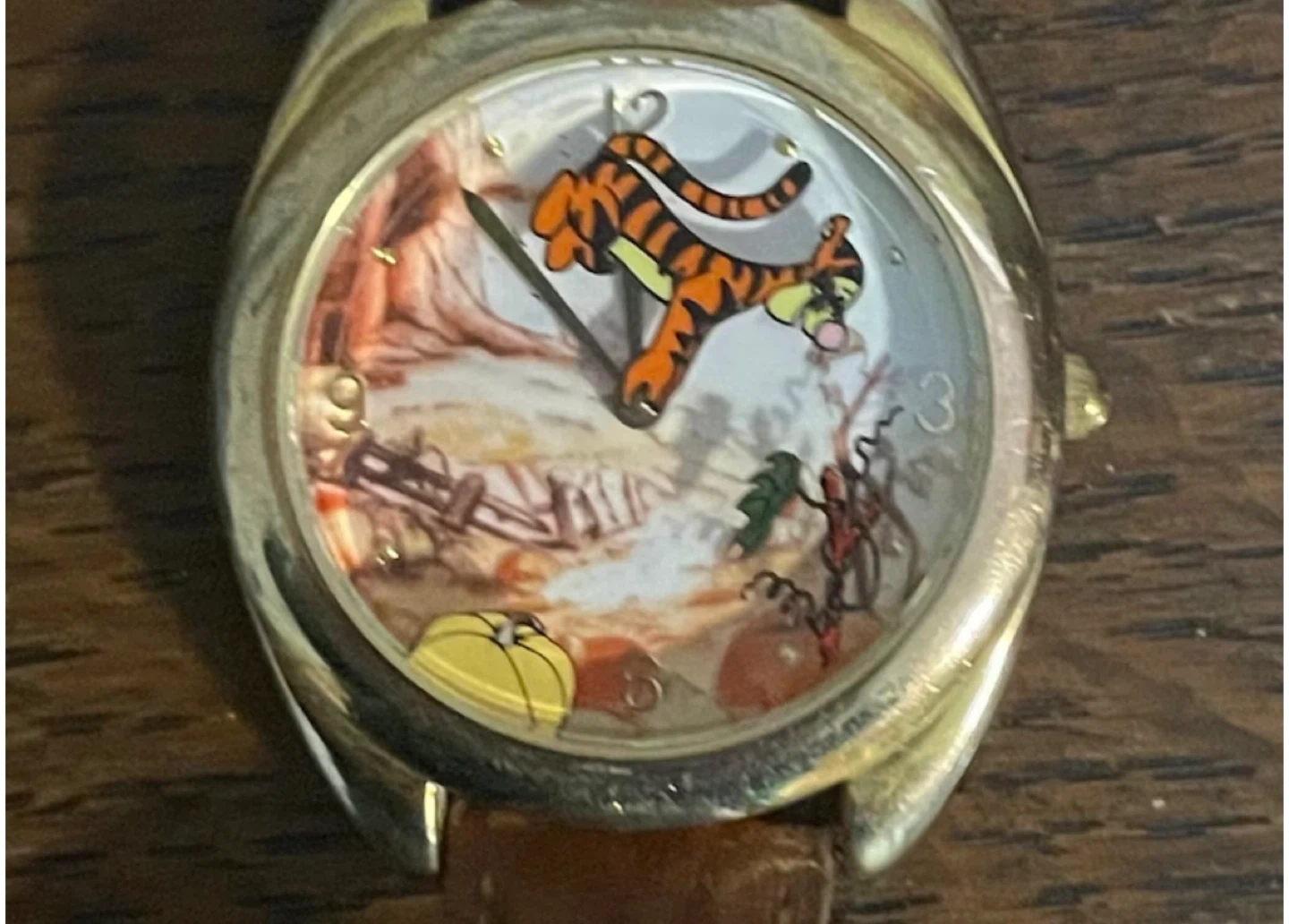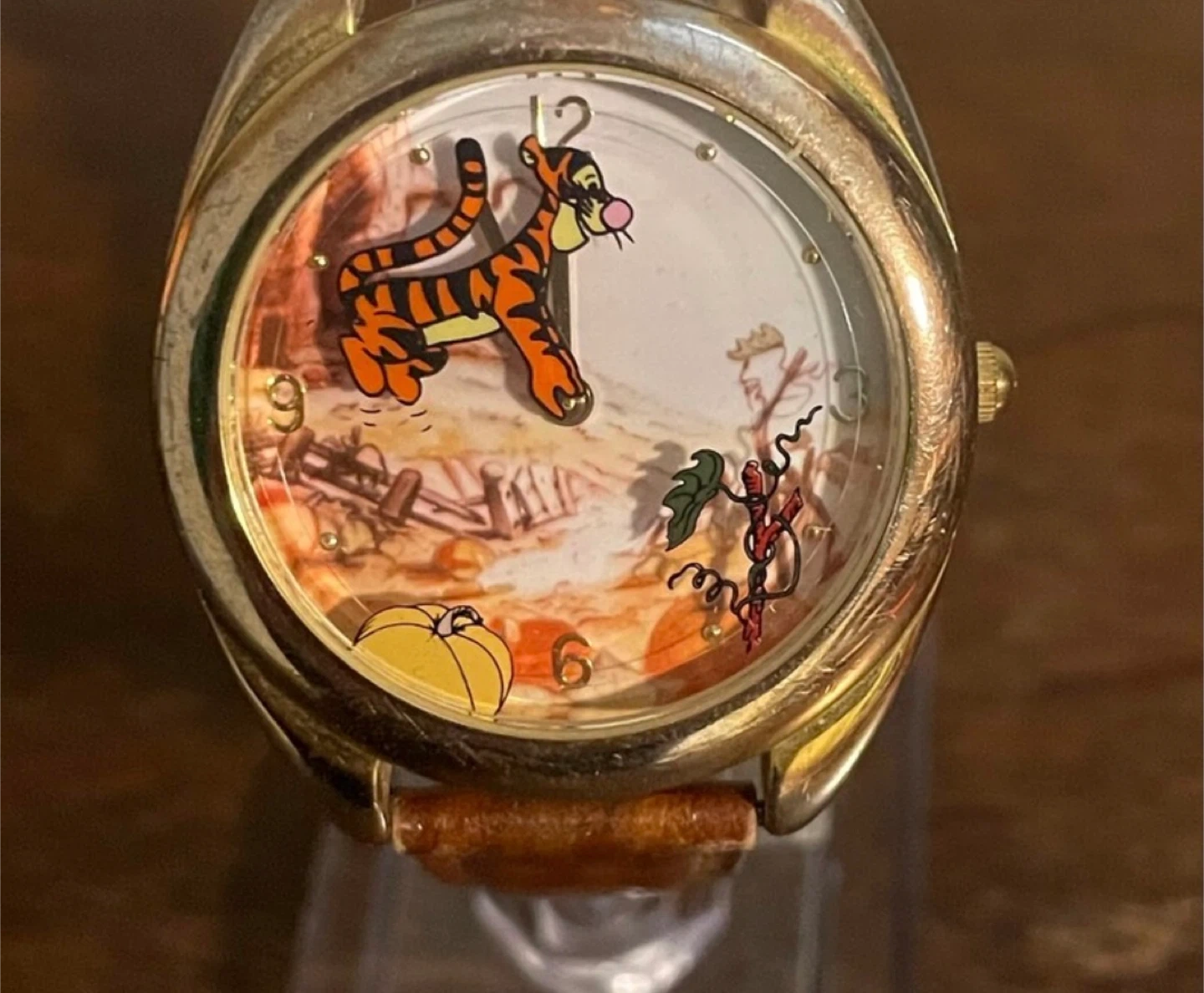 Selling a lovely limited edition Winnie the Pooh watch produced by Fossil! The face features Tigger pouncing in a pumpkin patch. . The watch is in very good to like new condition. The crystal is clear and free of scratches. The watch band is in very good condition, with curling from being stored on the watch stand. The watch runs well and keeps time, and battery was changed !:-)