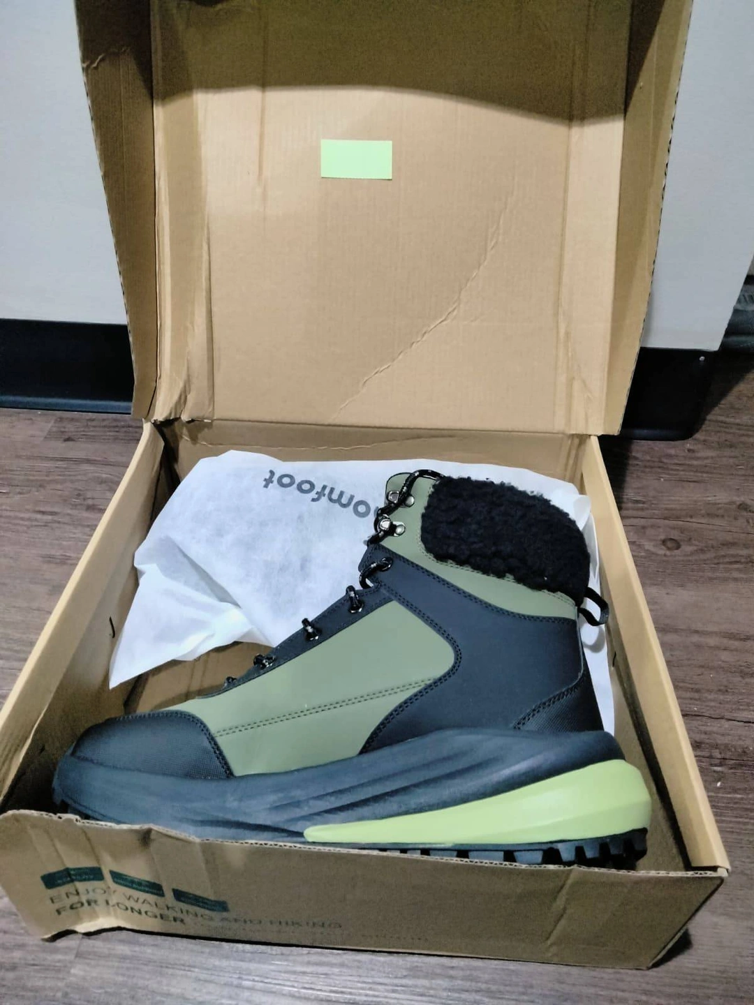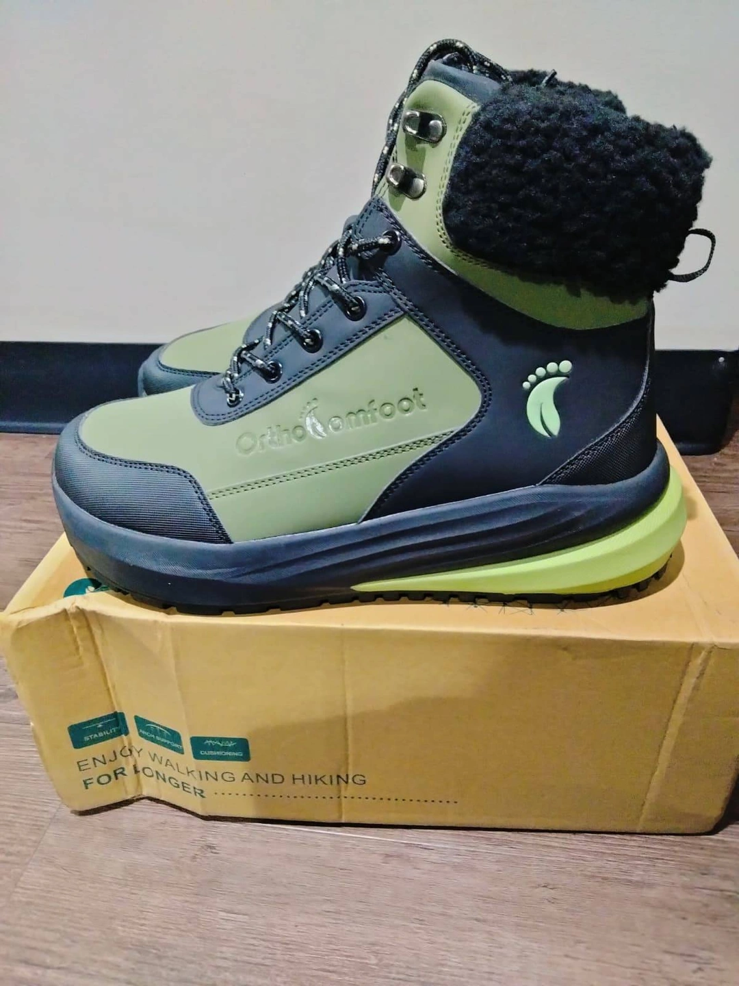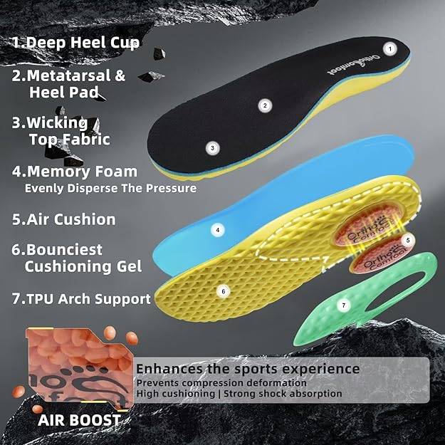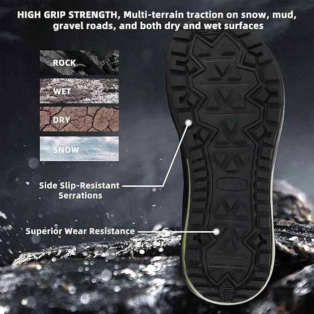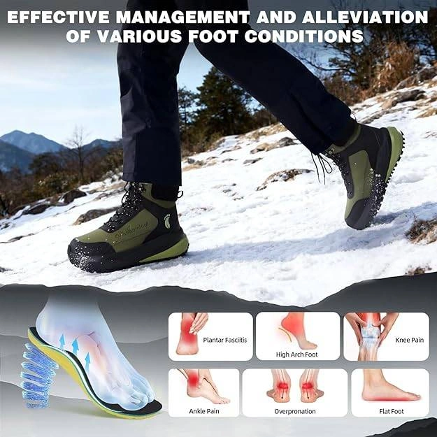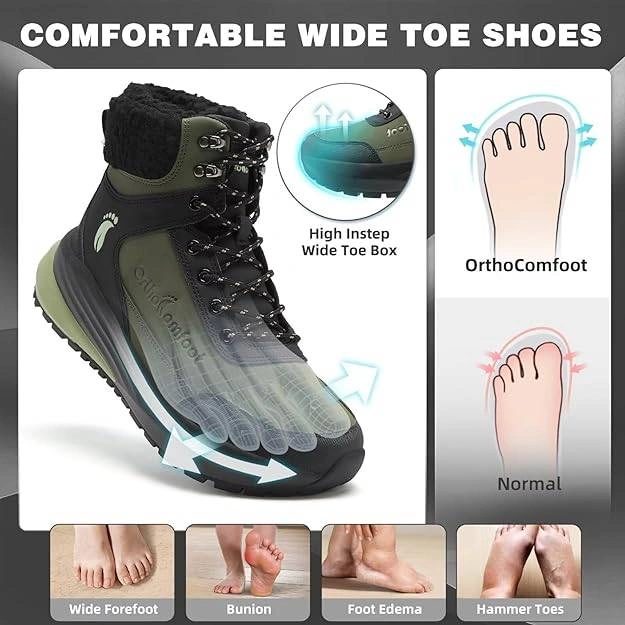 Selling a pair of OrthoComfoot men Waking hiking shoes. These boots are designed for walking and hiking for longer, offering stability and comfort. They feature high grip strength, multi-terrain traction for various surfaces like snow, mud, and gravel, and have side slip-resistant serrations. Also includes air boost insoles for enhanced sports experience, compression prevention, high cushioning, and strong shock absorption. Comes with the original box!