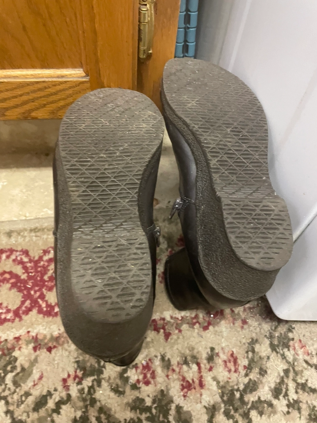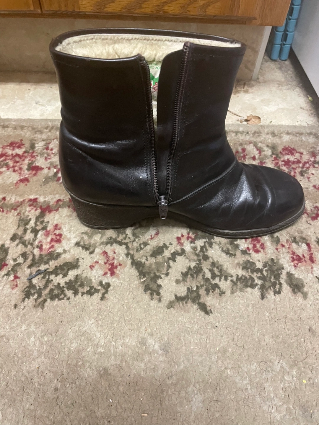 These are a pair of black leather women size 8 winter boots from the brand Morello. They have a zipper closure and are lined with a soft, warm material. They are used still good for the winter I only take cash no e-transfers thank you