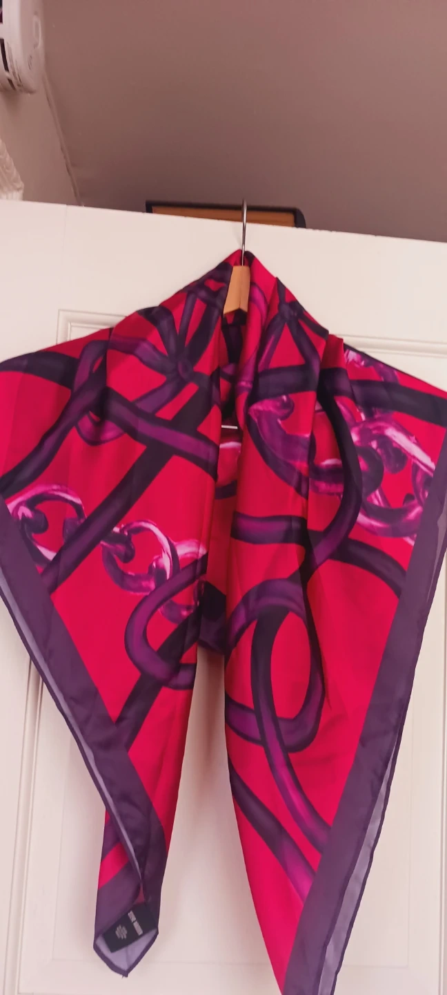 STEVE MADDEN beautiful vibrant colors large size scarf . It features a vibrant red and purple colors and chain pattern. 35"×35". Excellent condition. ALL MY PRICES ARE NEGOTIABLE !