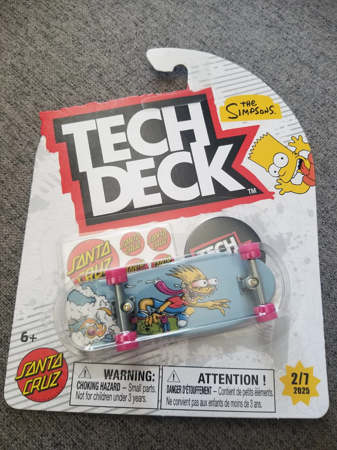 Selling a brand new Tech Deck fingerboard featuring The Simpsons and Santa Cruz designs! It's still in its original packaging and ready for some fingerboarding fun. Suitable for ages 6+ and has an expiry date of 2025 July 02
