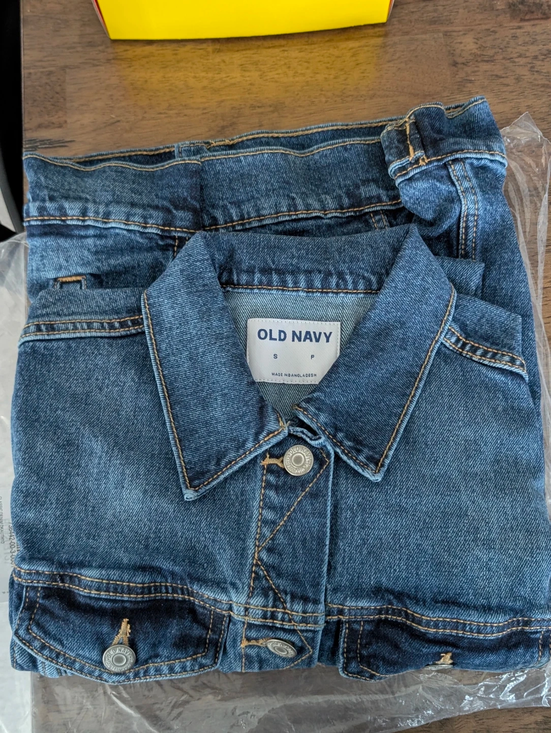 I'm selling a brand new Old Navy denim jacket! It's a size small and still has the tags on. Never been worn and ready for a new owner