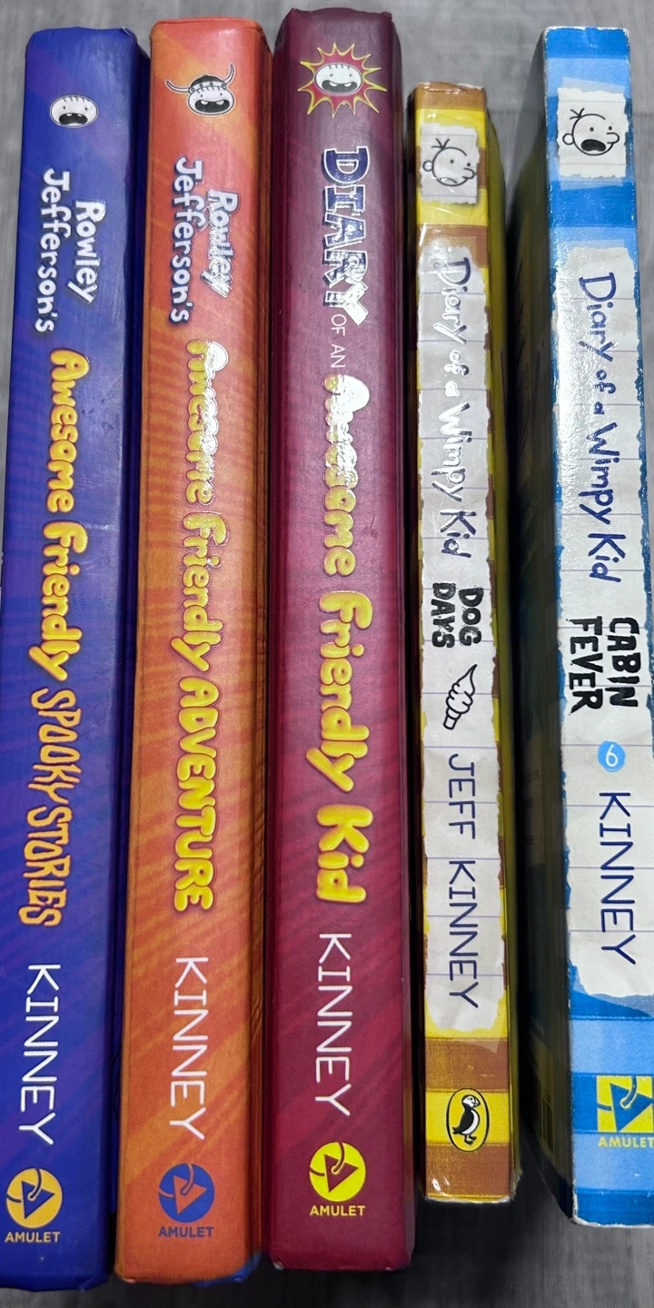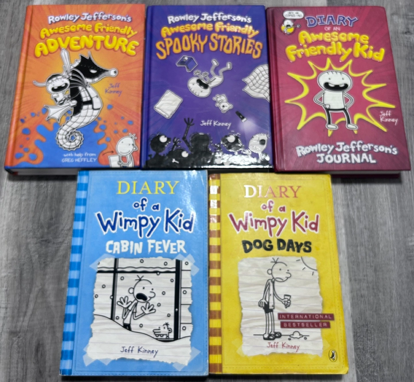 Collection of five popular children's books. Includes titles from the Diary of a Wimpy Kid and Rowley Jefferson series. Great for young readers.