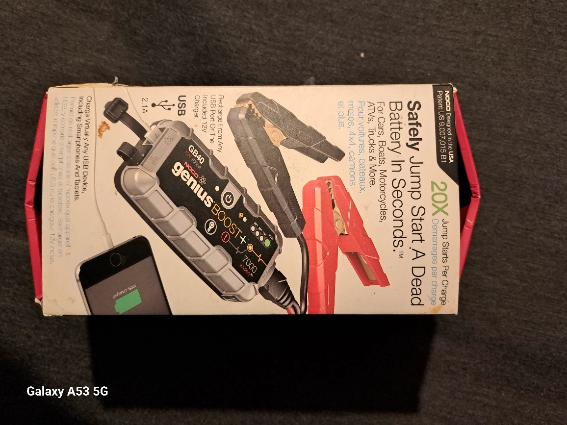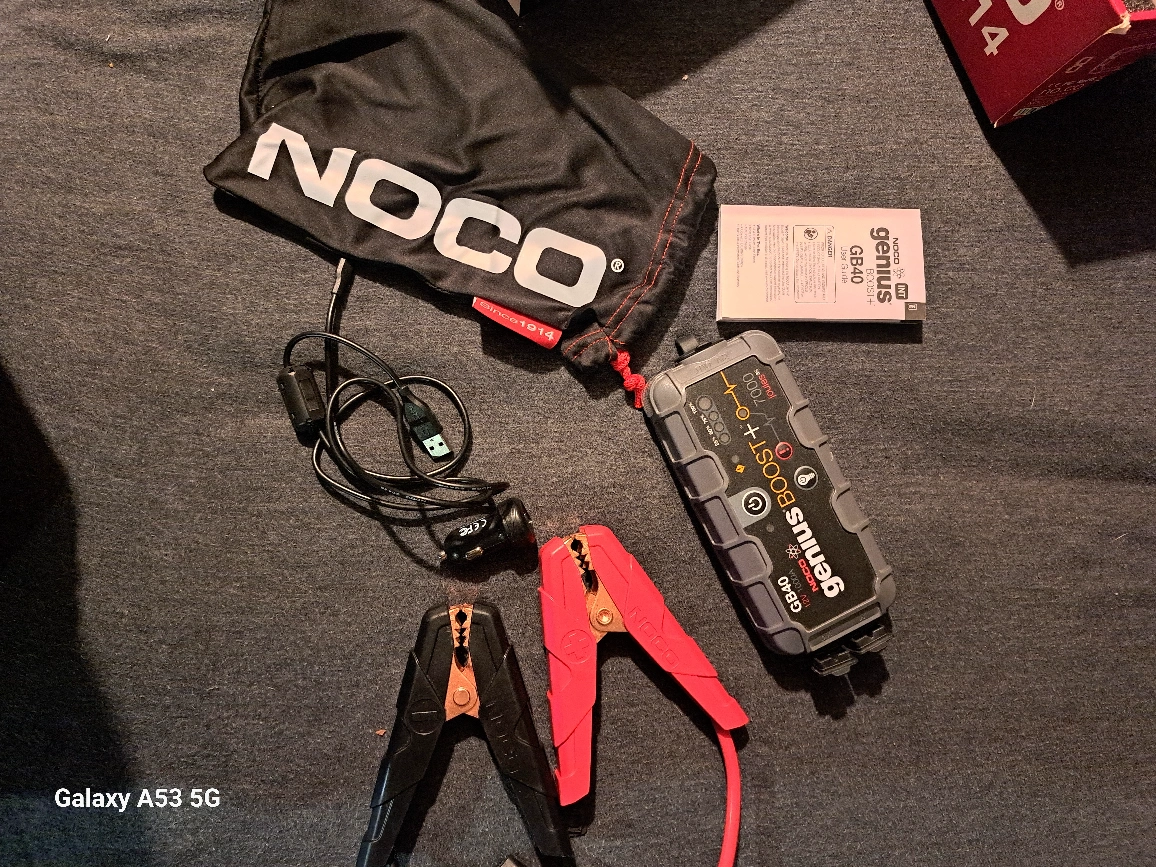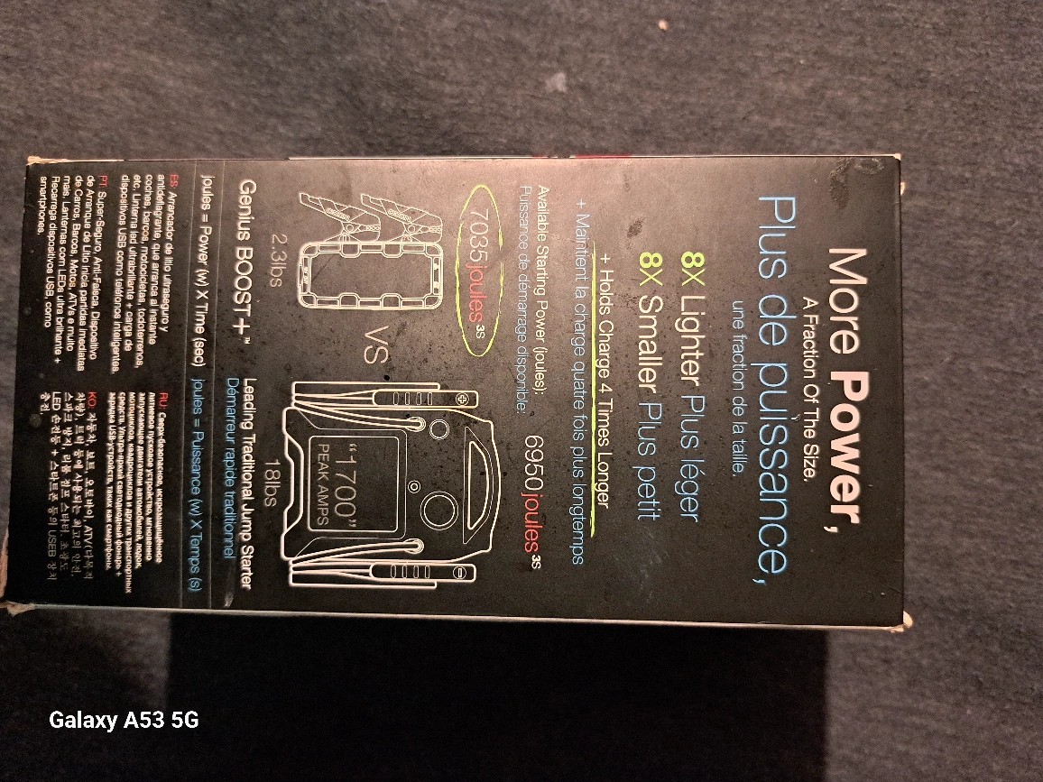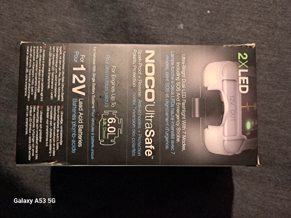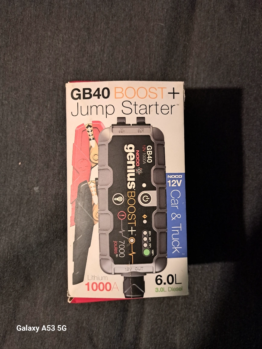 Portable jump starter. UltraSafe lithium battery. Includes carrying case. Jumps cars, trucks, motorcycles. Also charges smartphones and tablets via USB. 1000A peak amps. 6.0L petrol, 3.0L diesel compatible. used about 3 times. pretty much brand new