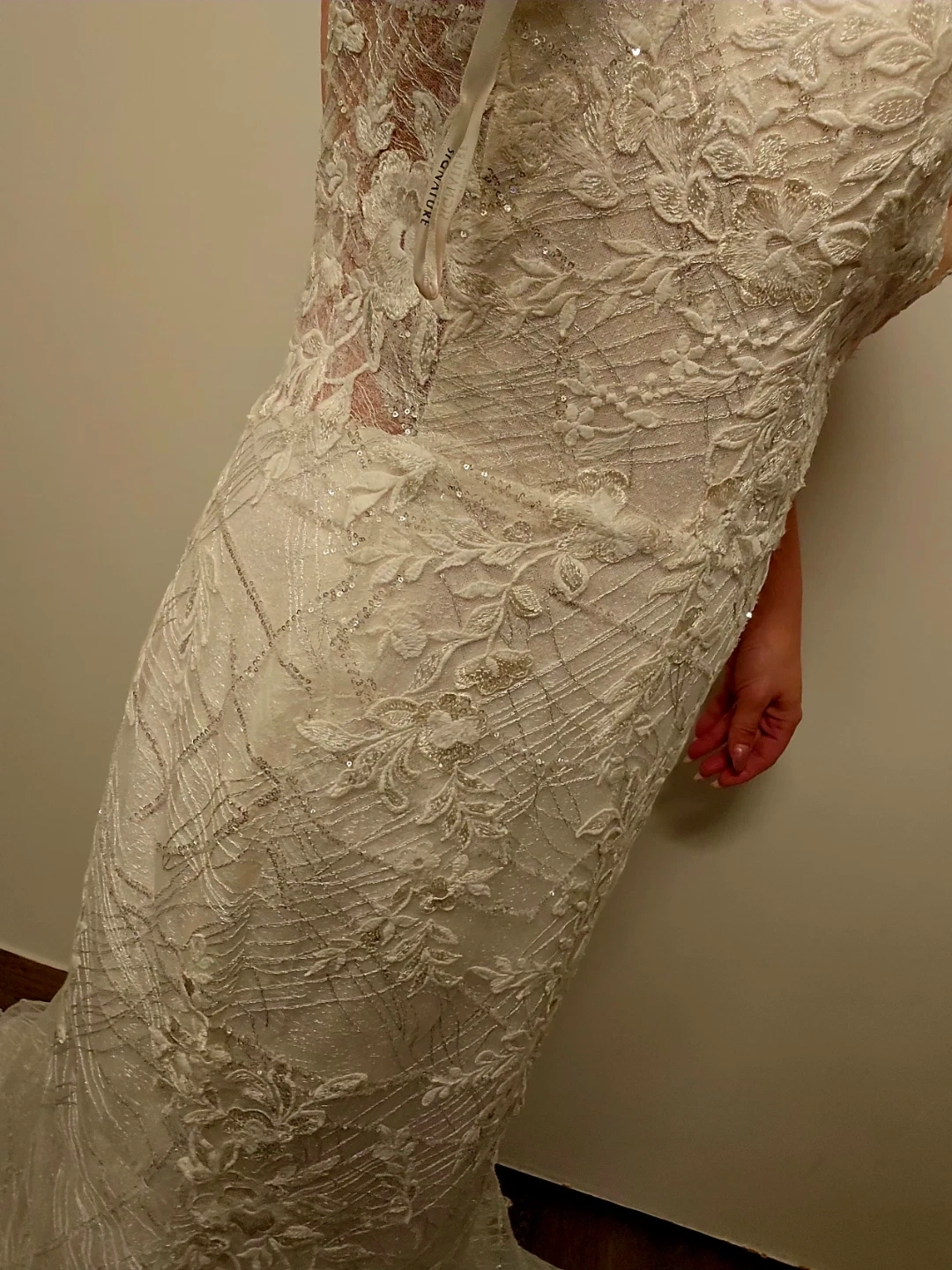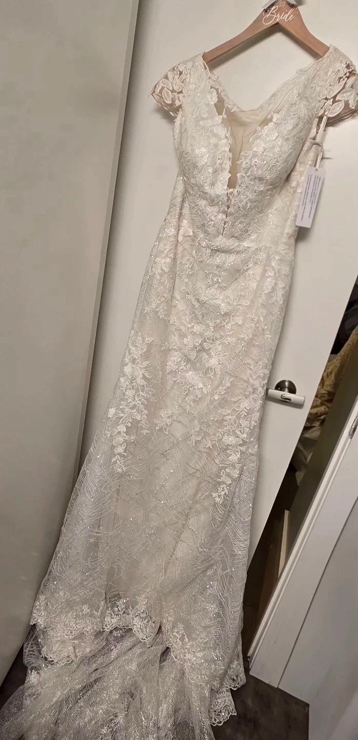 Gorgeous brand new bridal size 12 Galina Signature wedding dress. Ivory in colour with beautiful intricate beading throughout the entire dress. This dress was $2100 and is selling on postmark, still white and marketplace used for over $600. I bought 2 dresses but ended up going with my first choice instead. The pictures dont do justice on how gorgeous it is. The dress is too big so again, pictures of me in it are not a fair representation of the gown itself. Attached stock pics to show the proper fit.