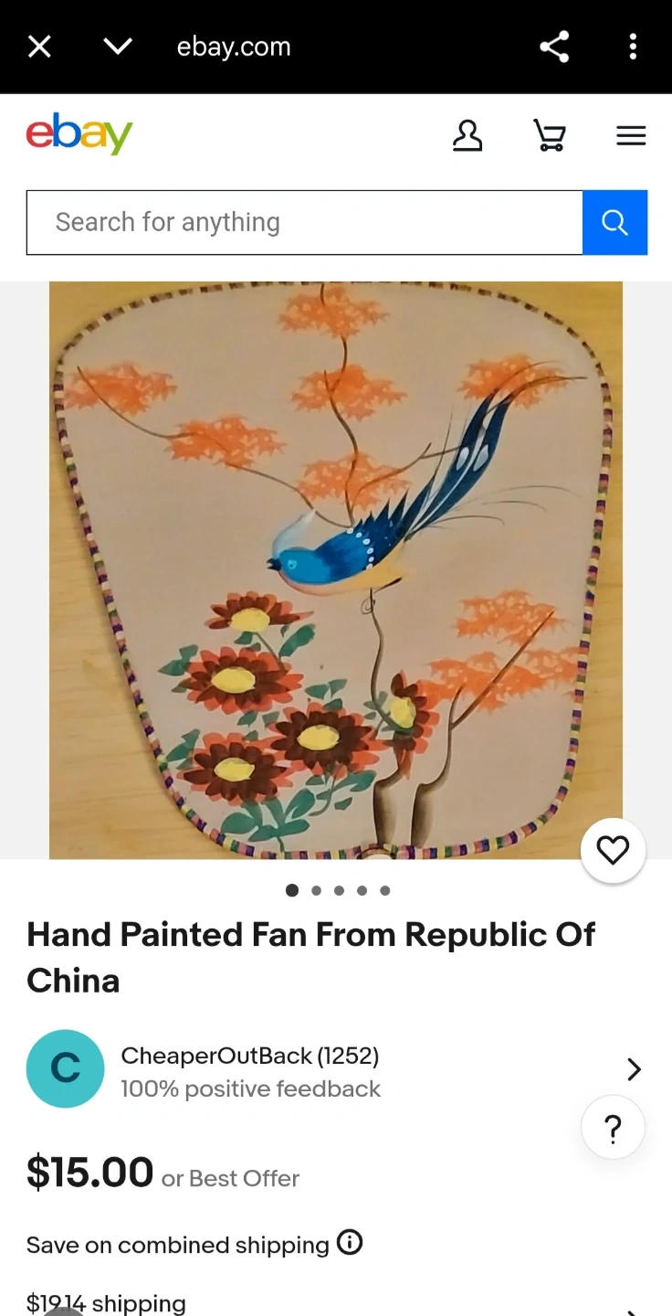 Beautiful vintage hand-painted silk fans. One fan depicts a bird perched on a flowering branch, while the other features a dragonfly among wisteria. They're decorative pieces with wooden handles. $4 Each