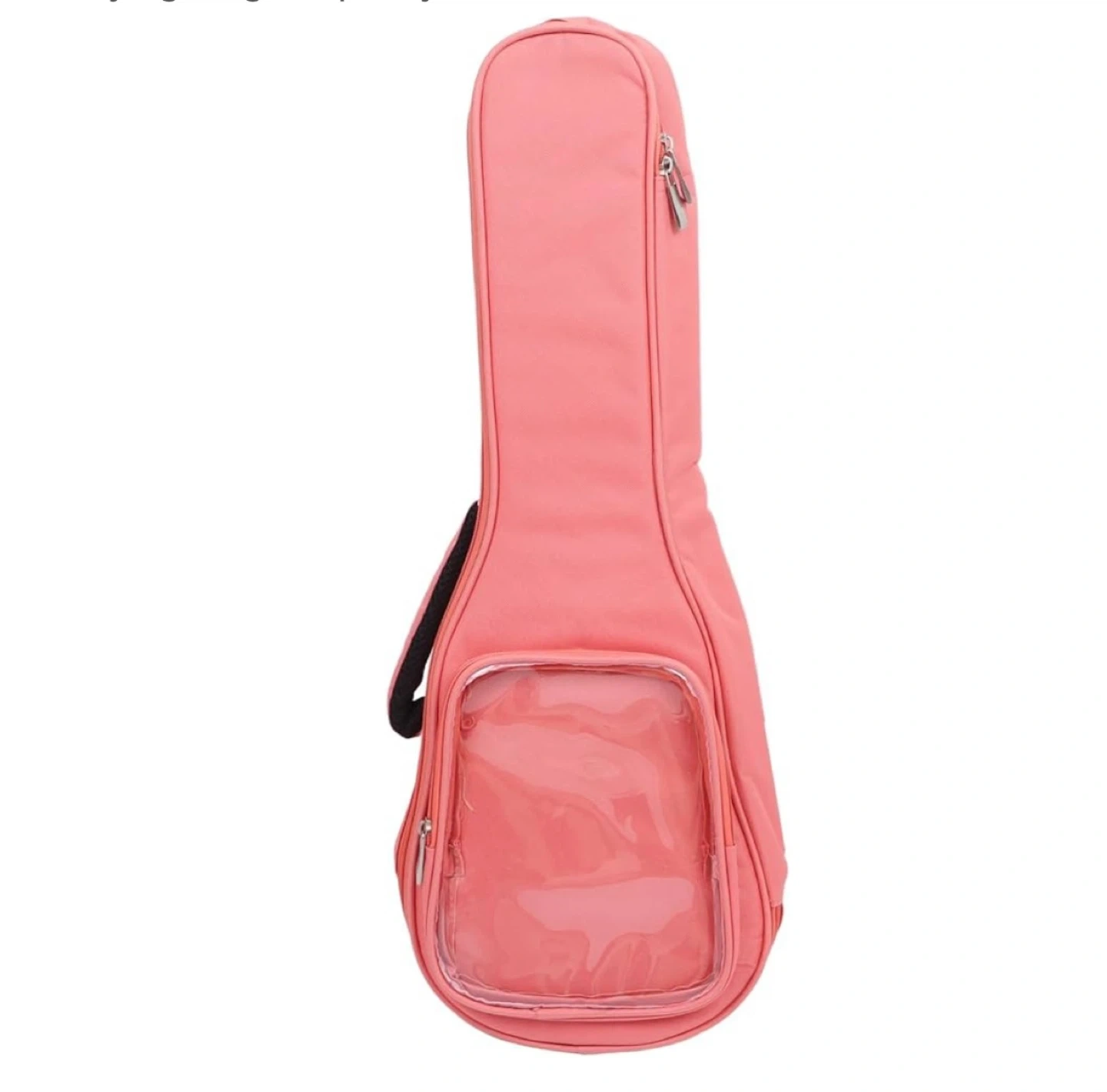 Selling a coral pink ukulele gig bag! It's perfect for carrying your ukulele safely and in style. The bag features a clear pocket on the front, and a convenient handle and straps for easy transport. Great for musicians on the go