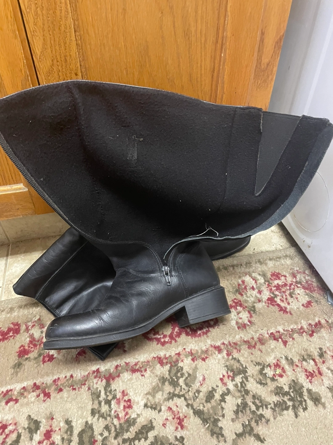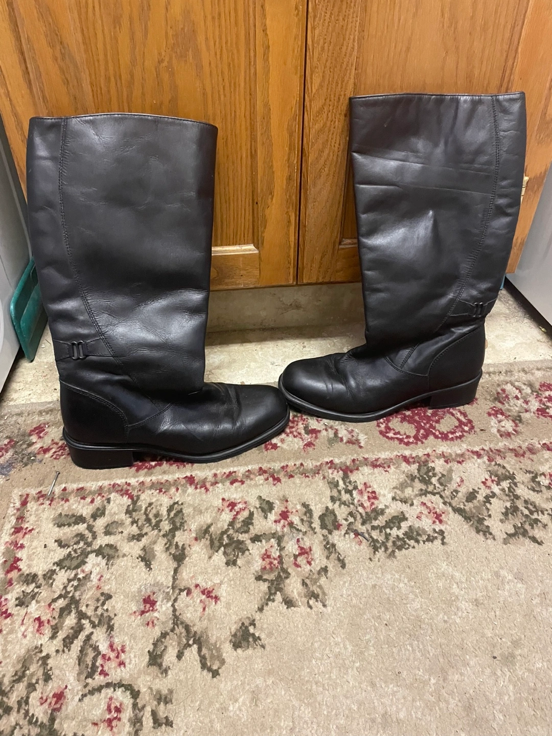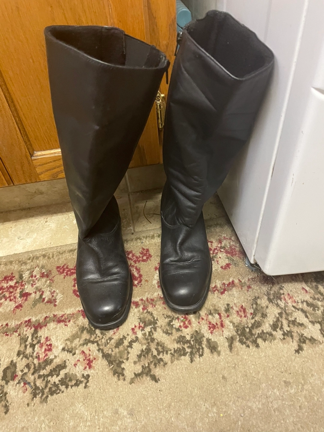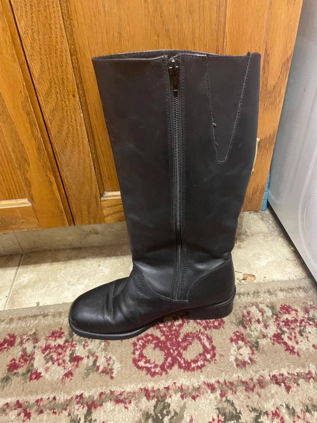 Black riding boots in great condition. They have a zipper on the side. Perfect for fall or any time of the year to wear them only been used a couple times still in good condition only take cash no e-transfers please thank you