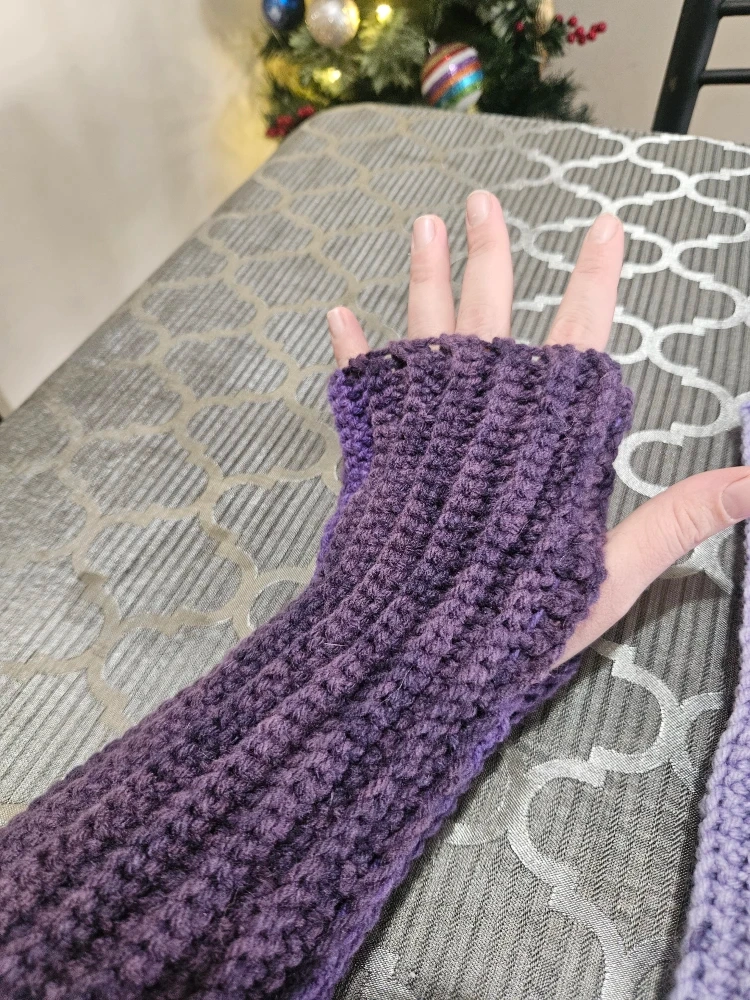 Handmade Crochet Fingerless Gloves - Purple