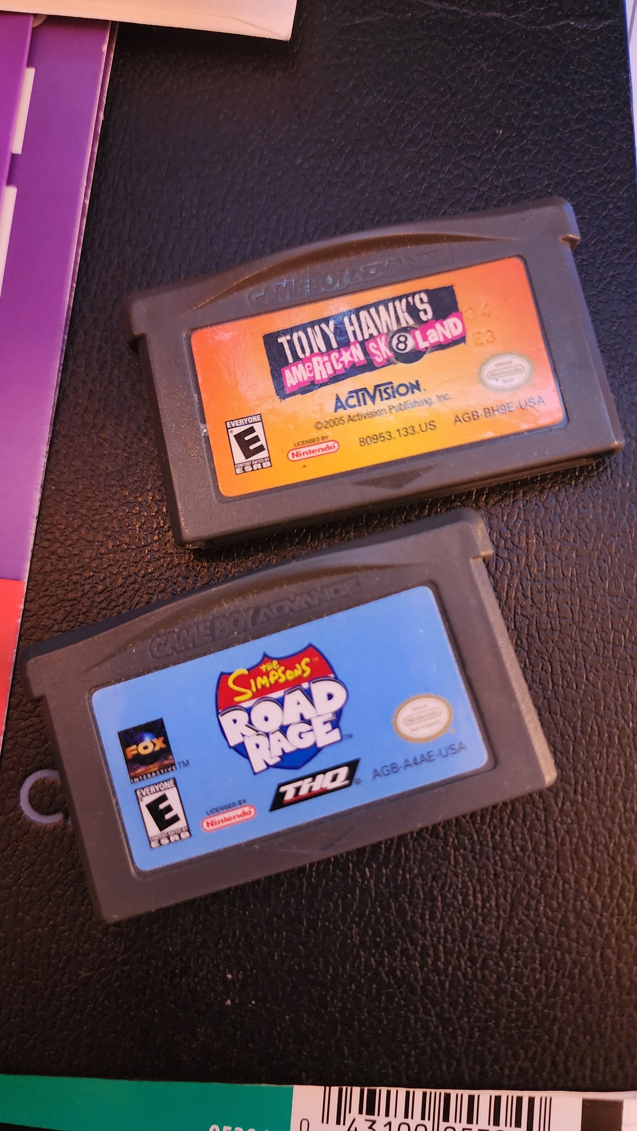Selling two Game Boy Advance games! You'll get Tony Hawk's American Sk8land and The Simpsons Road Rage. Both games are in good condition and ready for some retro gaming fun!