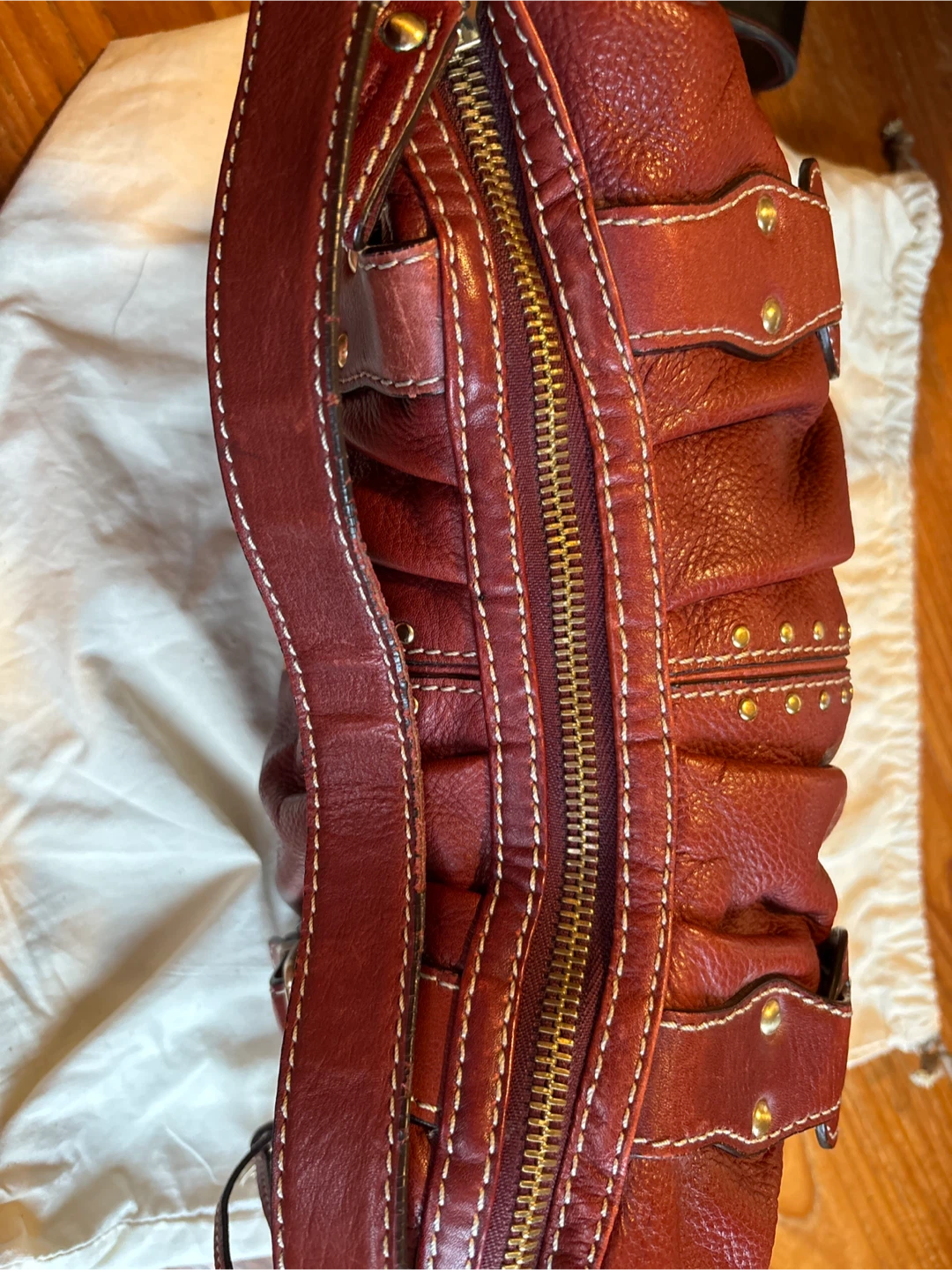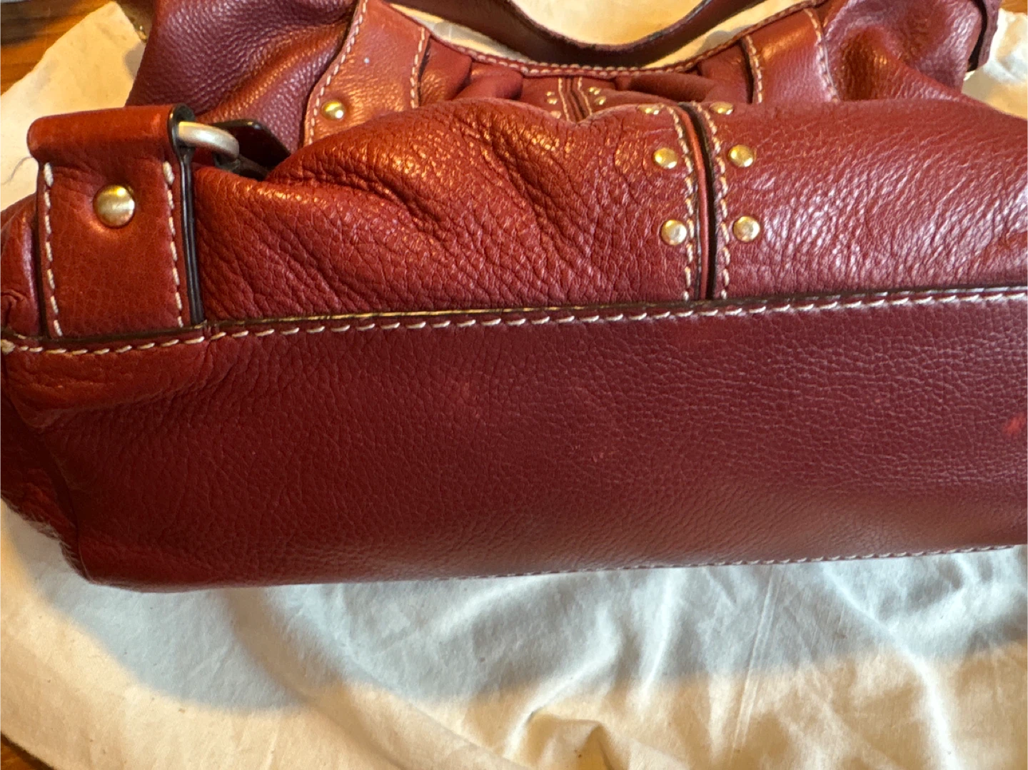 A stylish red leather shoulder bag from Michael Kors! It features gold-tone hardware and a spacious interior. Perfect for everyday use and adding a pop of colour to your outfit