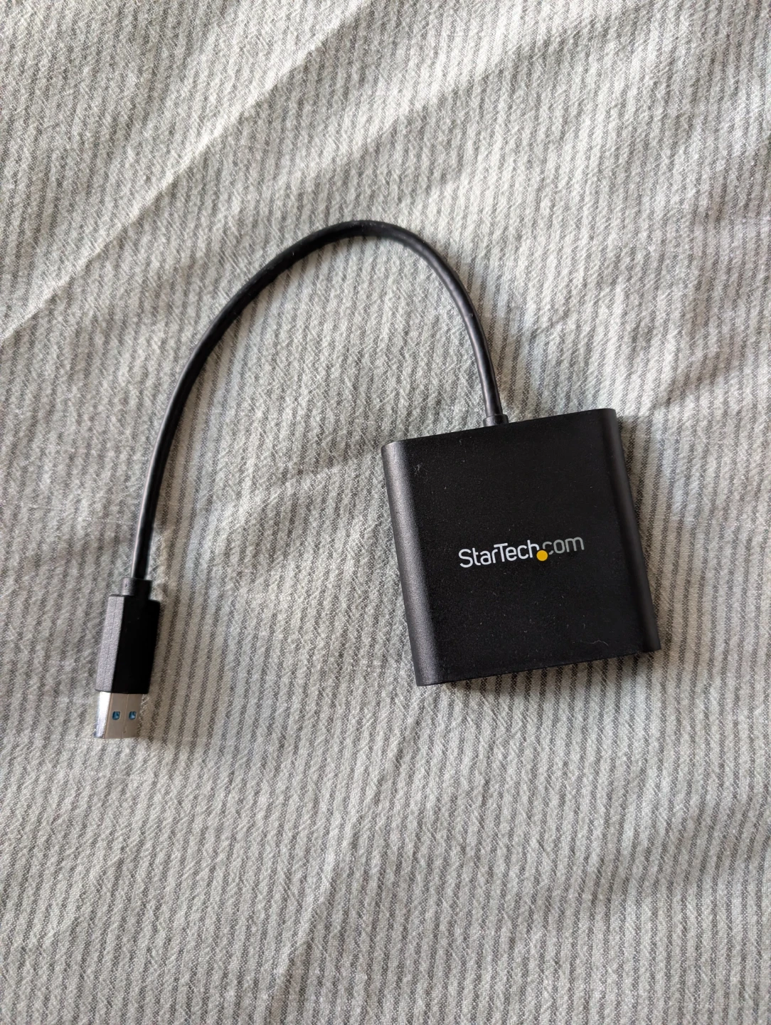 Selling a StarTech USB32HD2 USB 3.0 to HDMI Dual Monitor adapter. It's in great condition-- have never used it since it's not compatible with my specific MacBook.