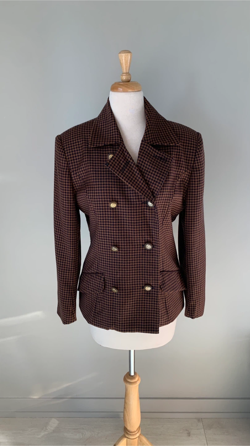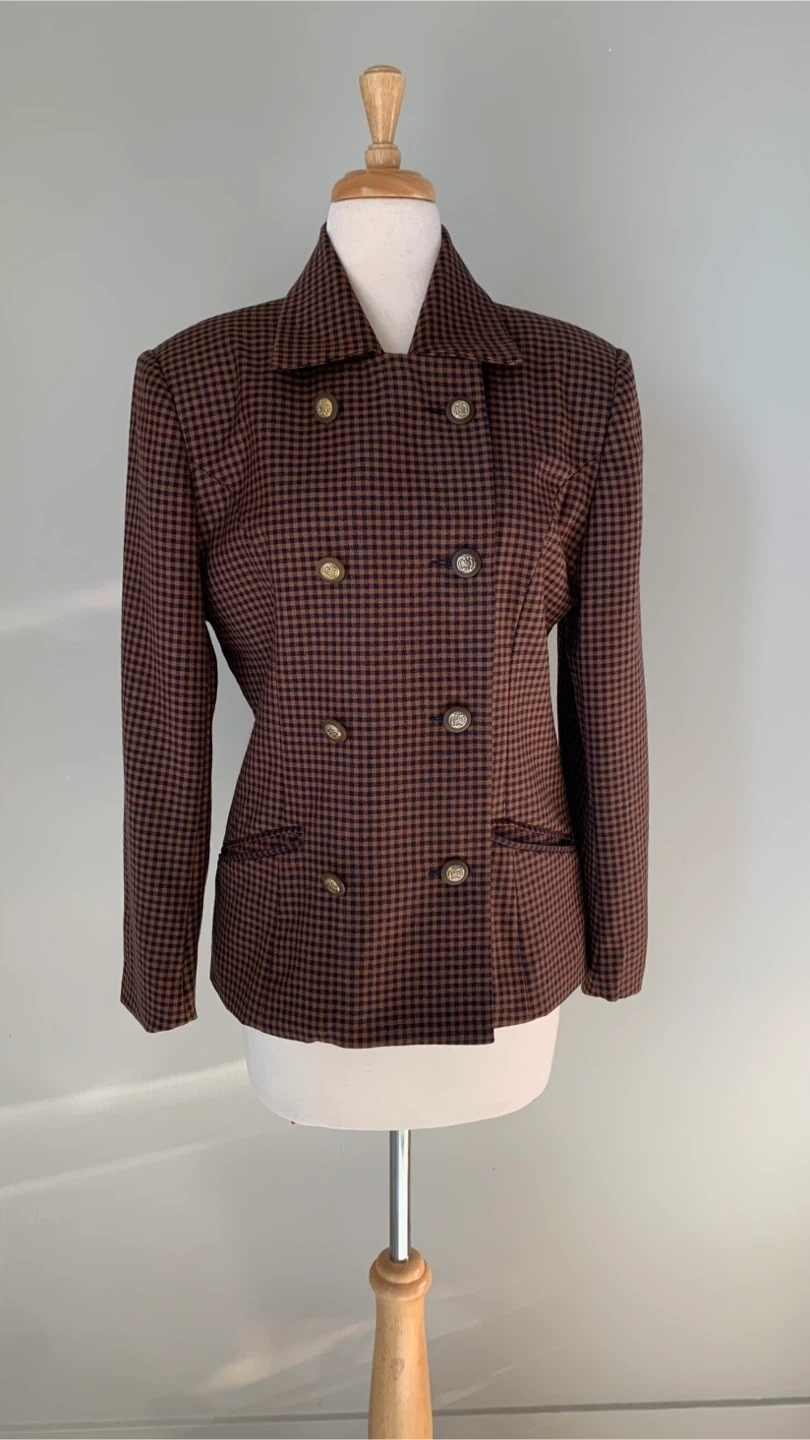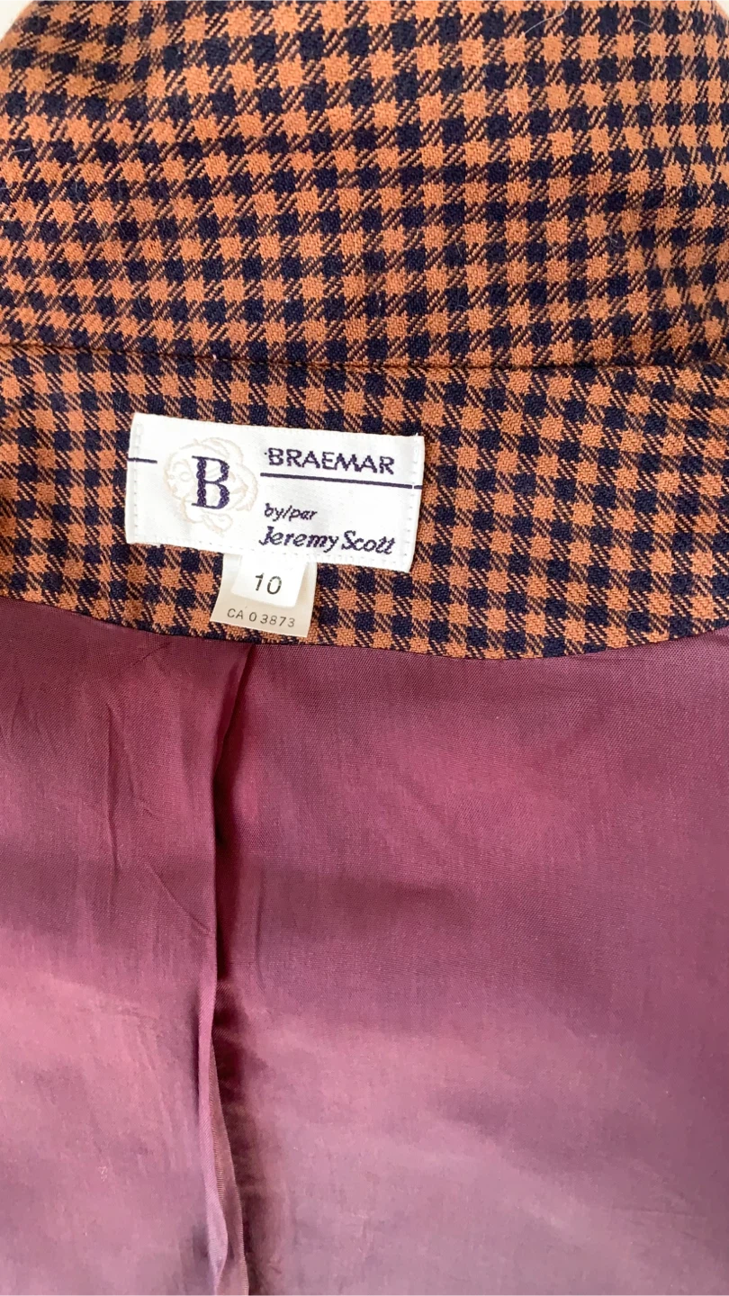 Jeremy Scott Vintage 100% Wool Blazer - Brown Houndstooth M/L