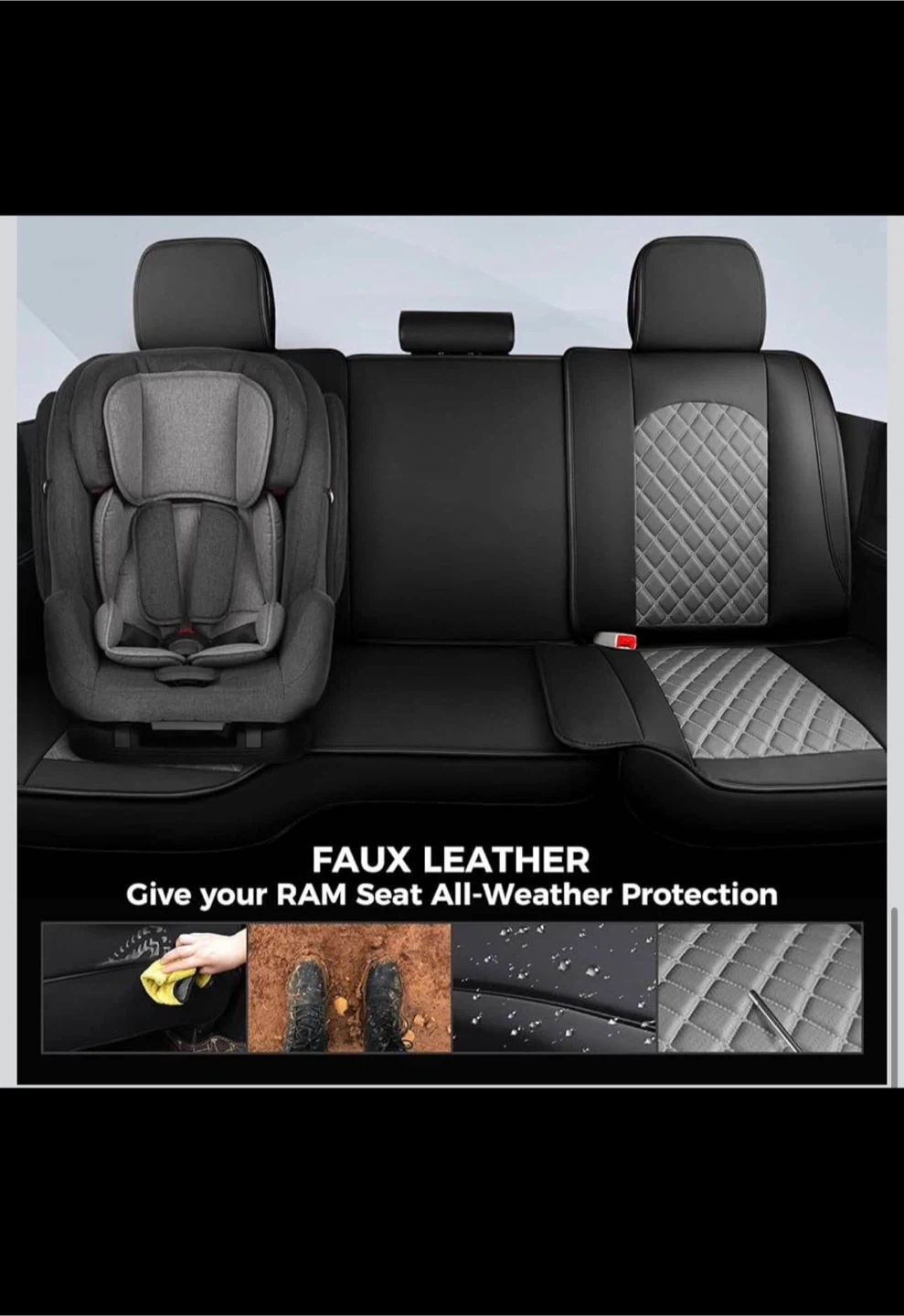 [Suit For Year Round Use] - Ram seat covers full set are constructed with quality synthetic perforated insert leather with foam-backed for maximum durability and comfort, protect them from scratches, stains, fading and spills. Glove-like fit leather seat covers will look and feel like reupholstering your car seats