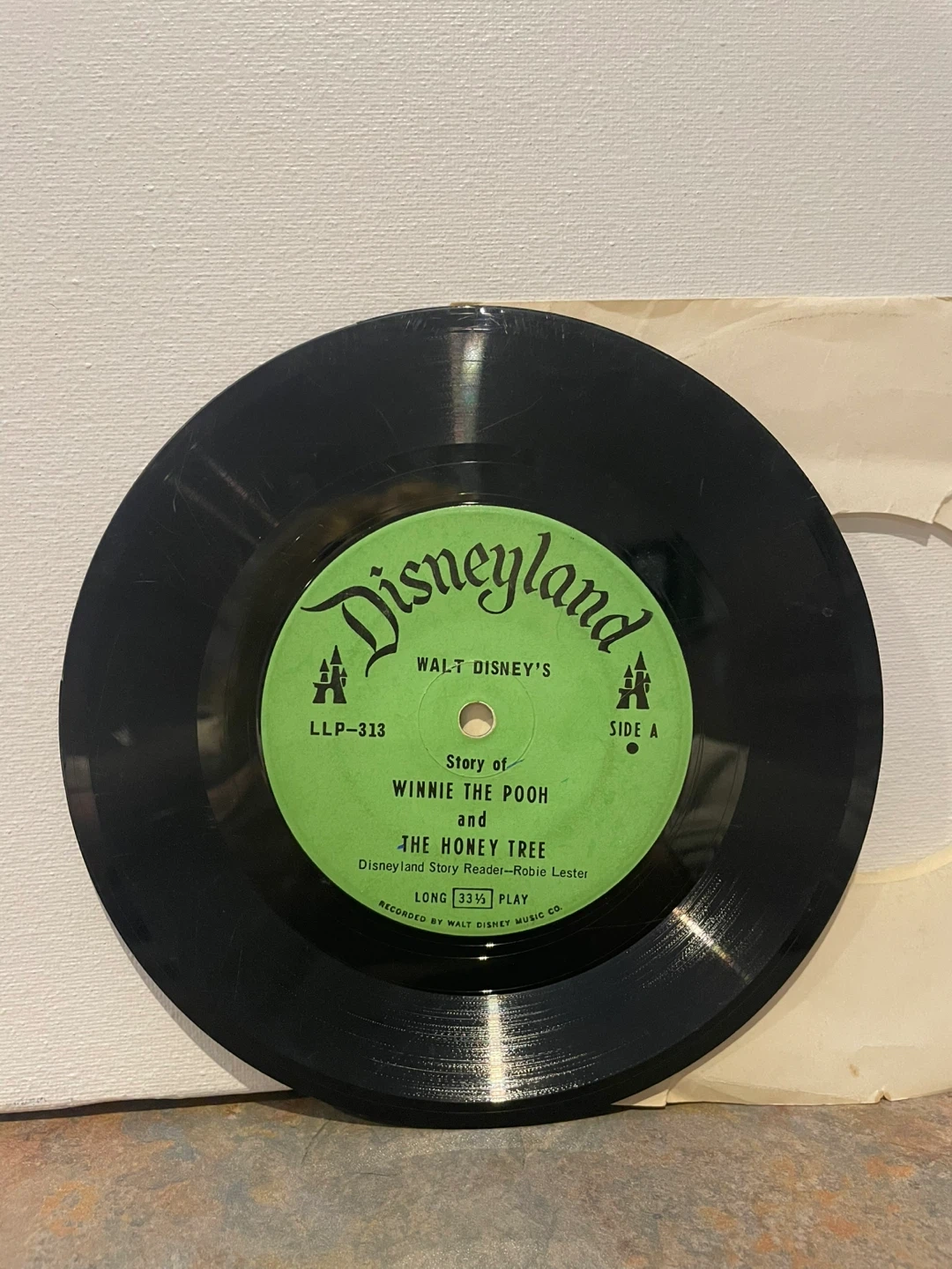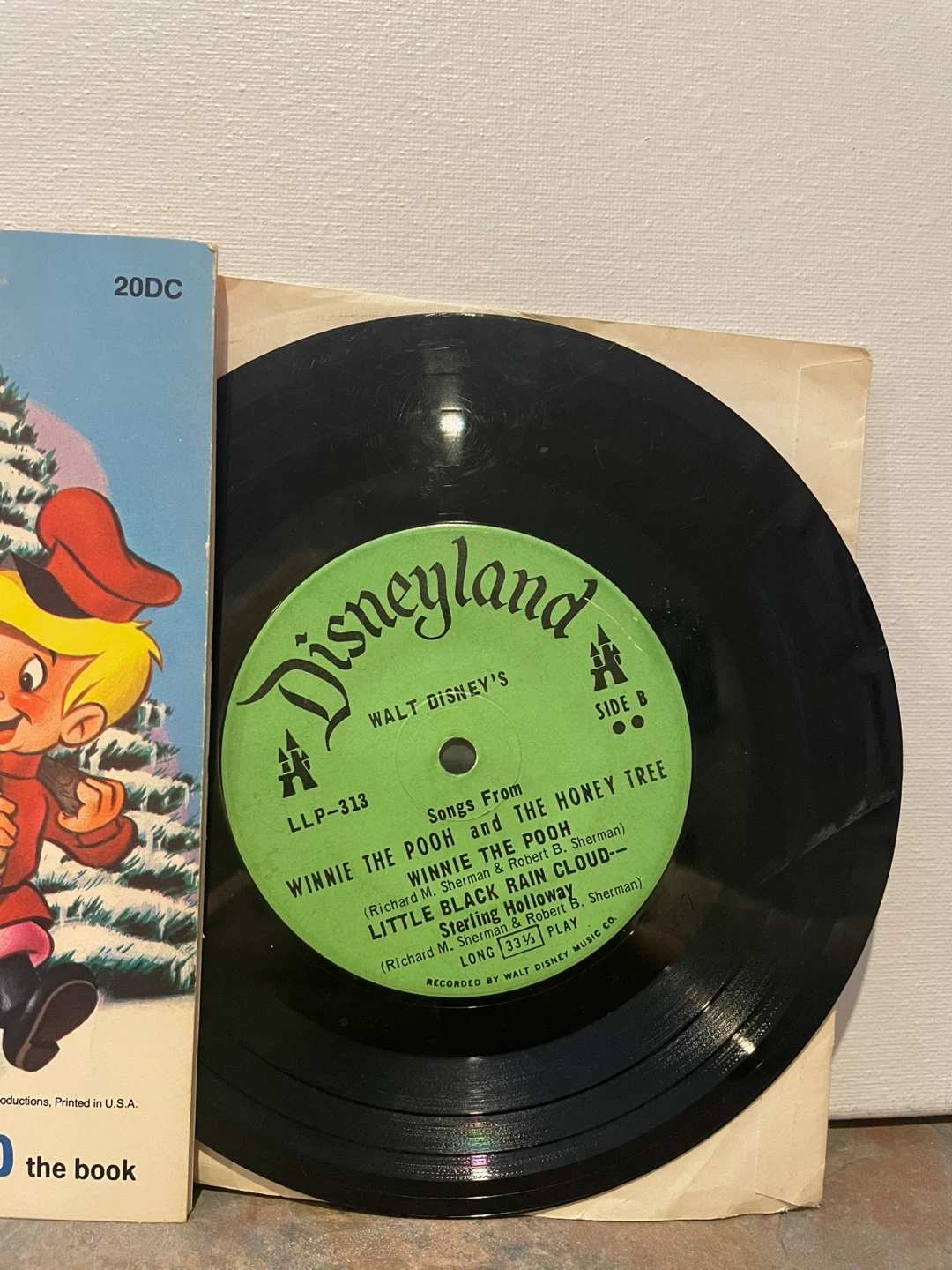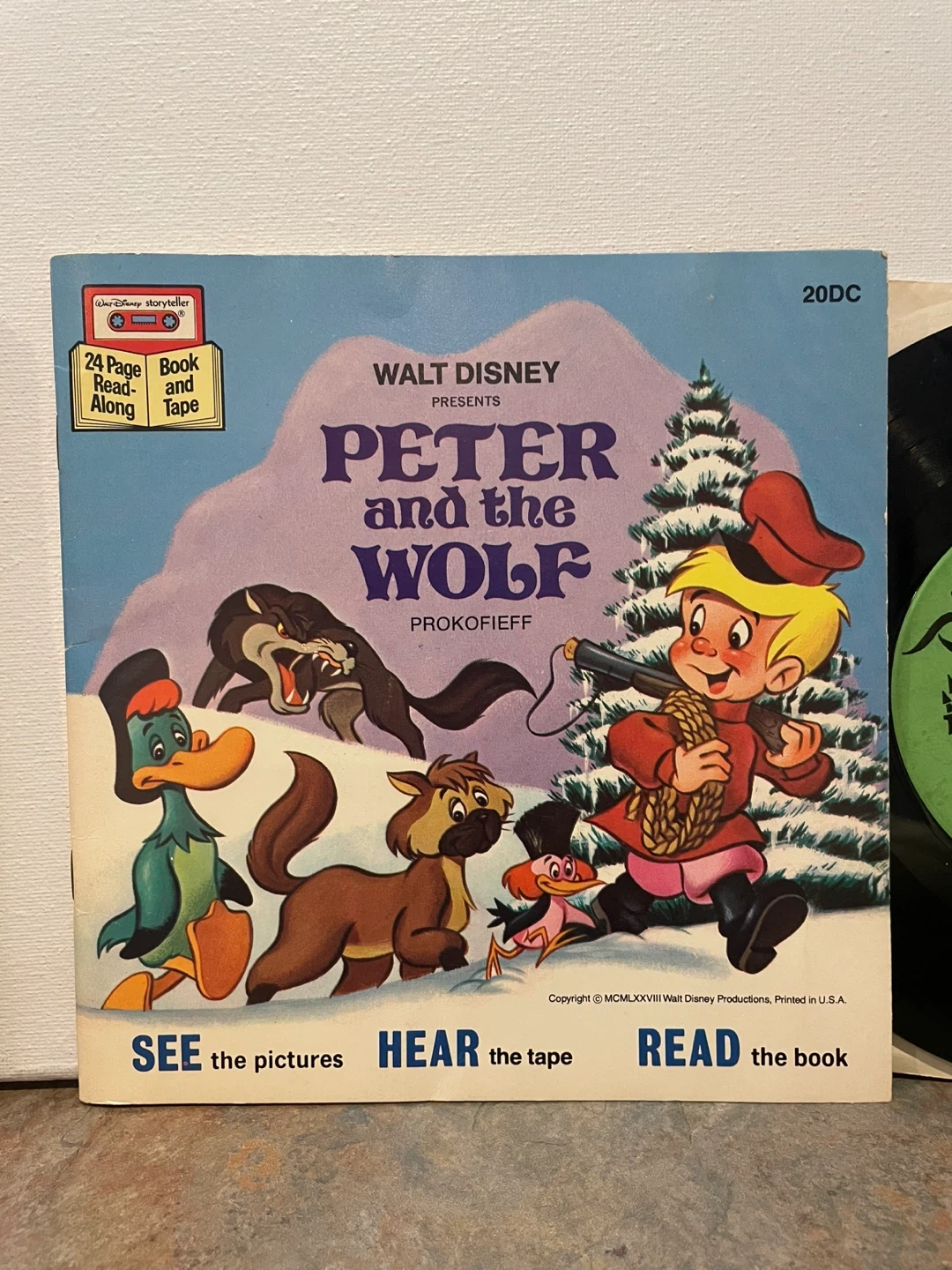 Vintage Walt Disney book and record Pete's Dragon, Peter and the Wolf (book only) and Winnie the Pooh (record only). Covers are worn, record and book are intact