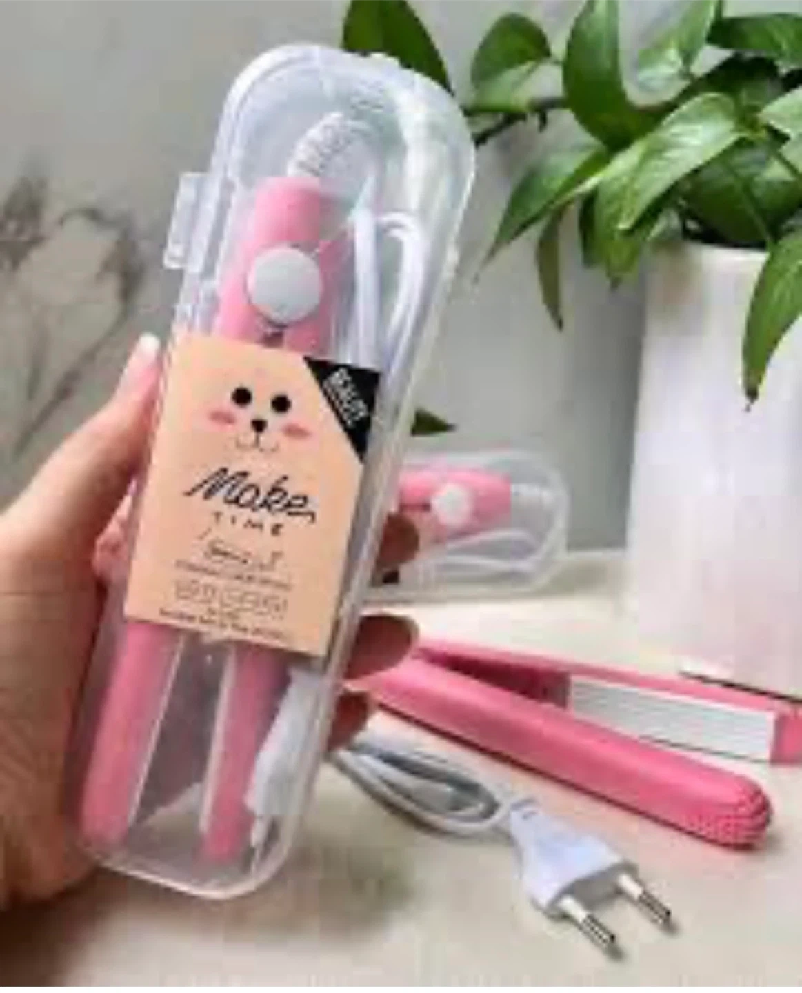 Selling a mini pink hair straightener that's perfect for travel or quick touch-ups! It comes with a handy case for easy storage and portability. The dimensions are approximately 17.5cm x 3cm. It's in great condition and ready to use!