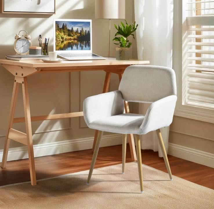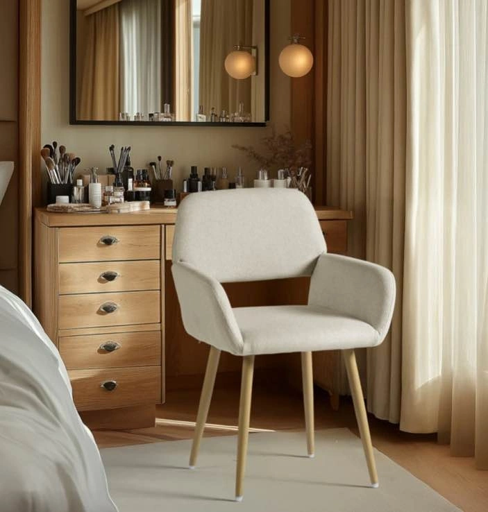 - Neutral beige fabric upholstery