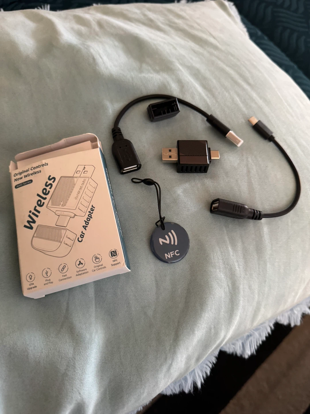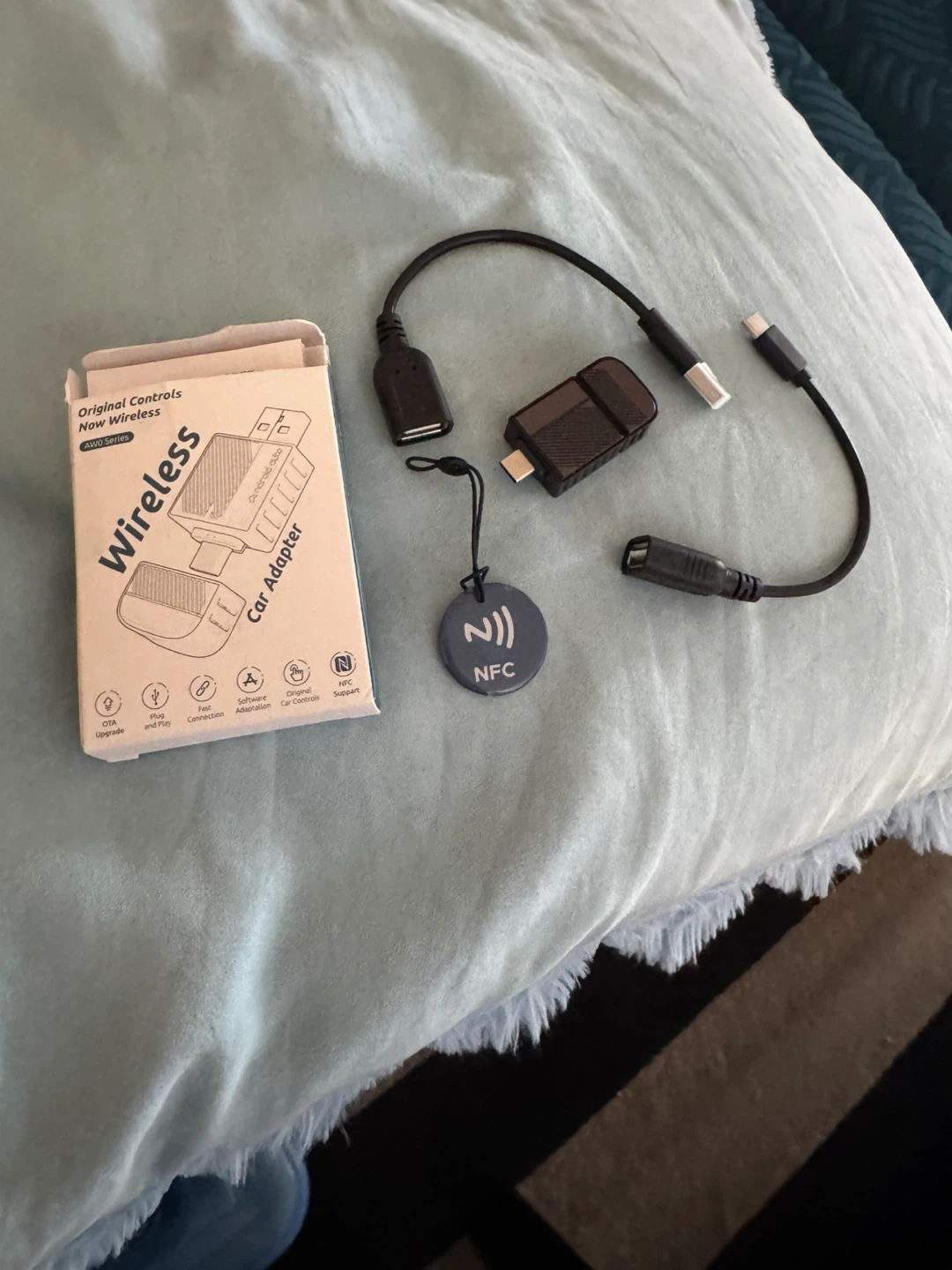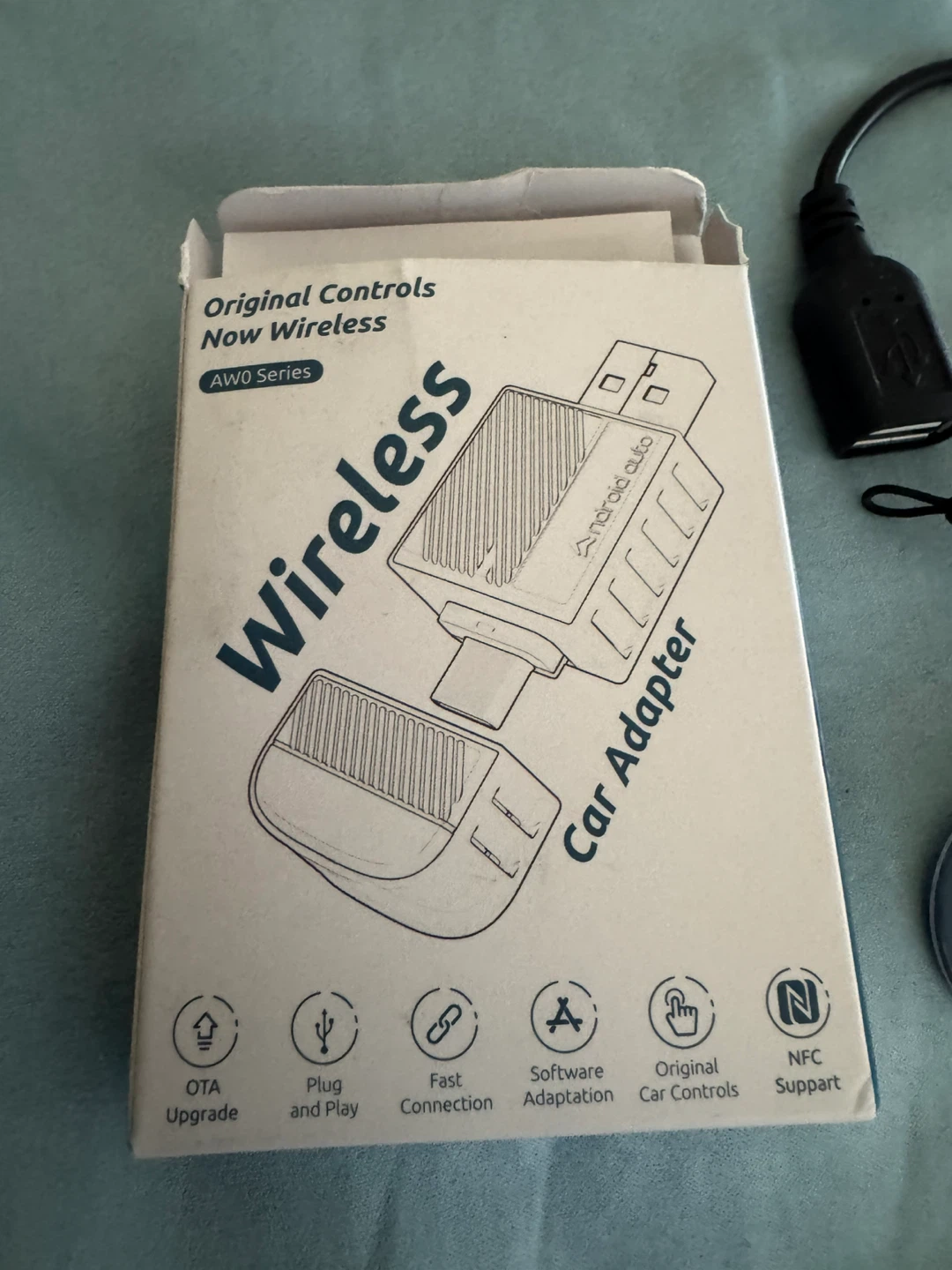 Selling an Original Controls Wireless Car Adapter, AWO Series. It's in great condition and comes with all the original components and box. This adapter features OTA upgrade, plug and play, fast connection, software adaptation, original car controls, and NFC support