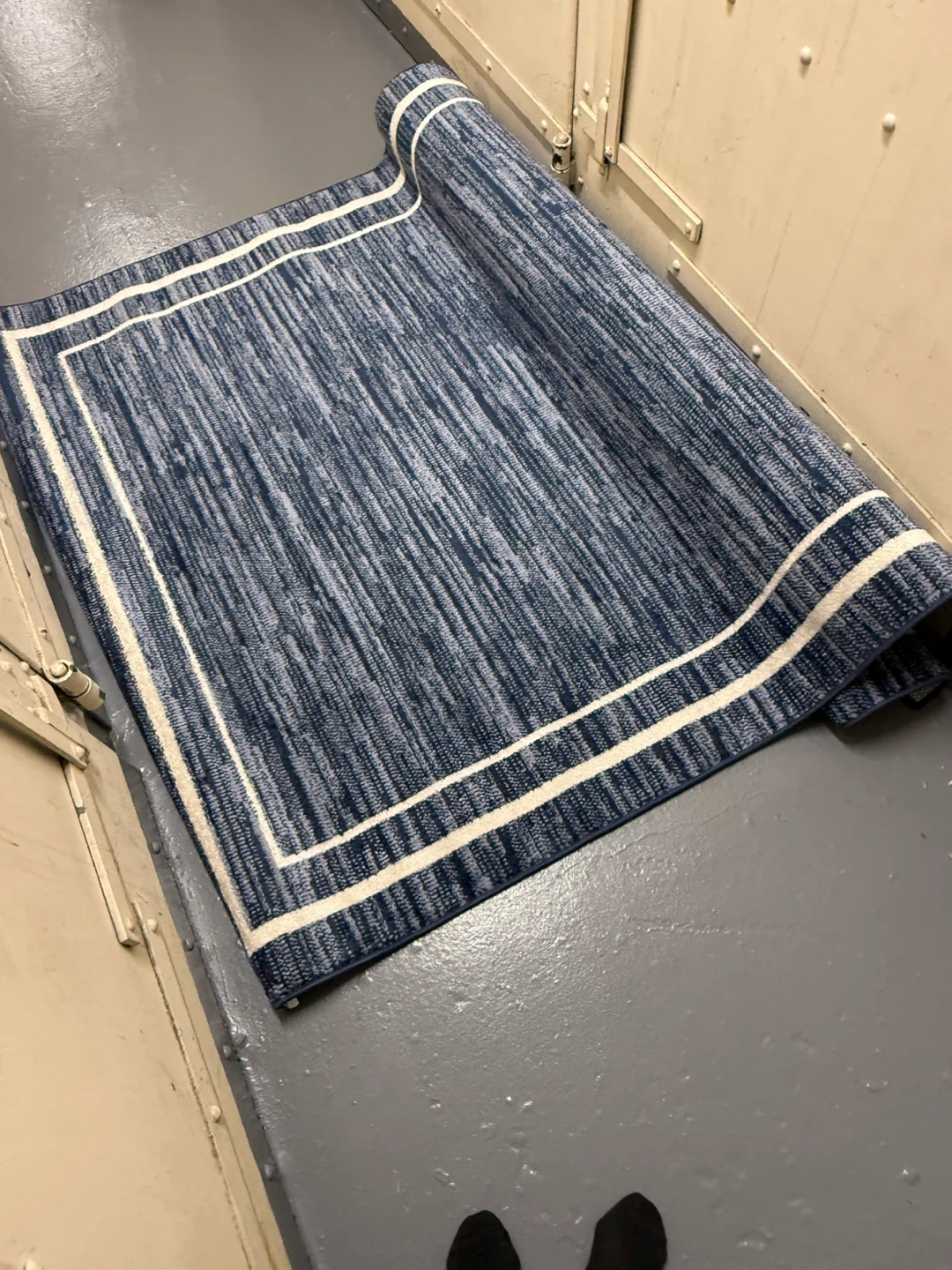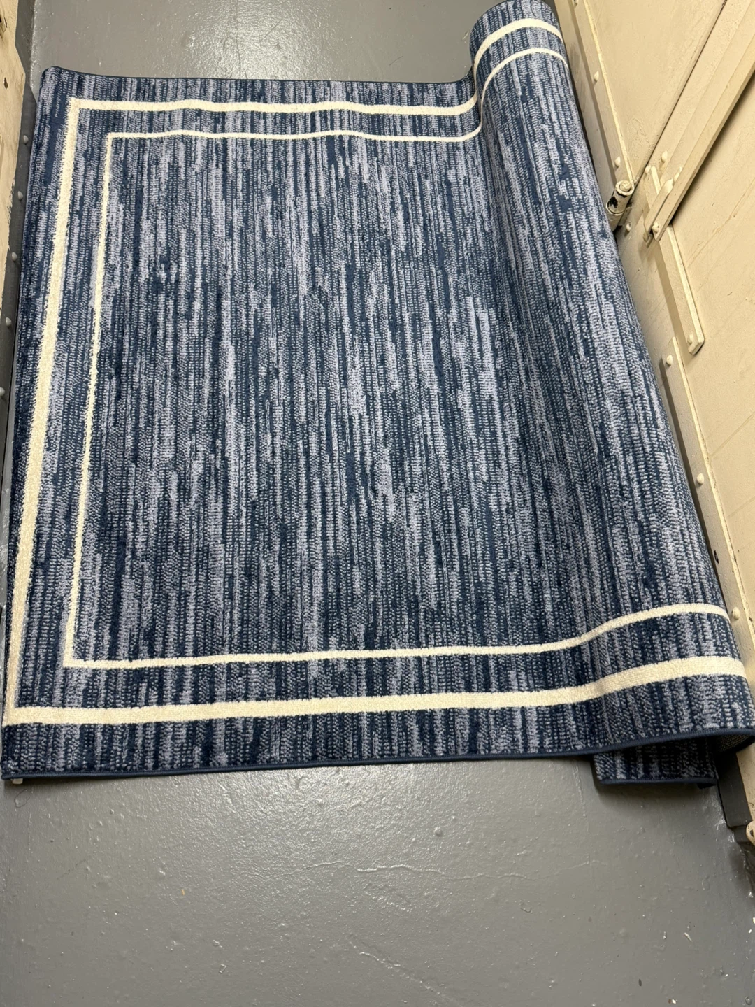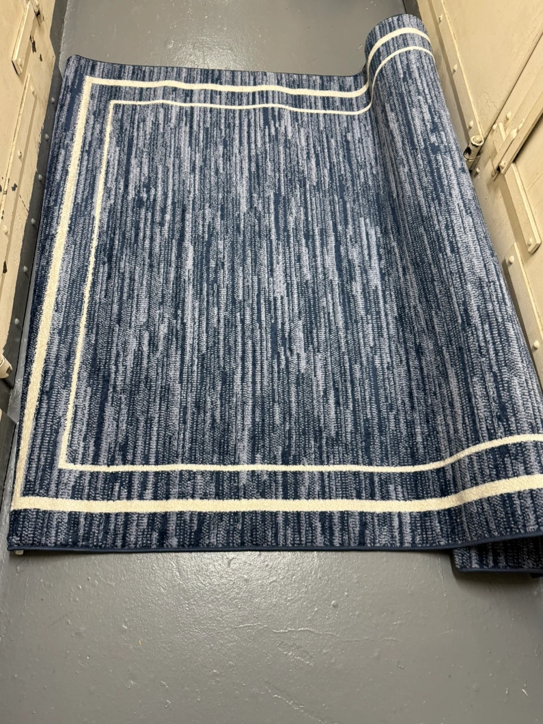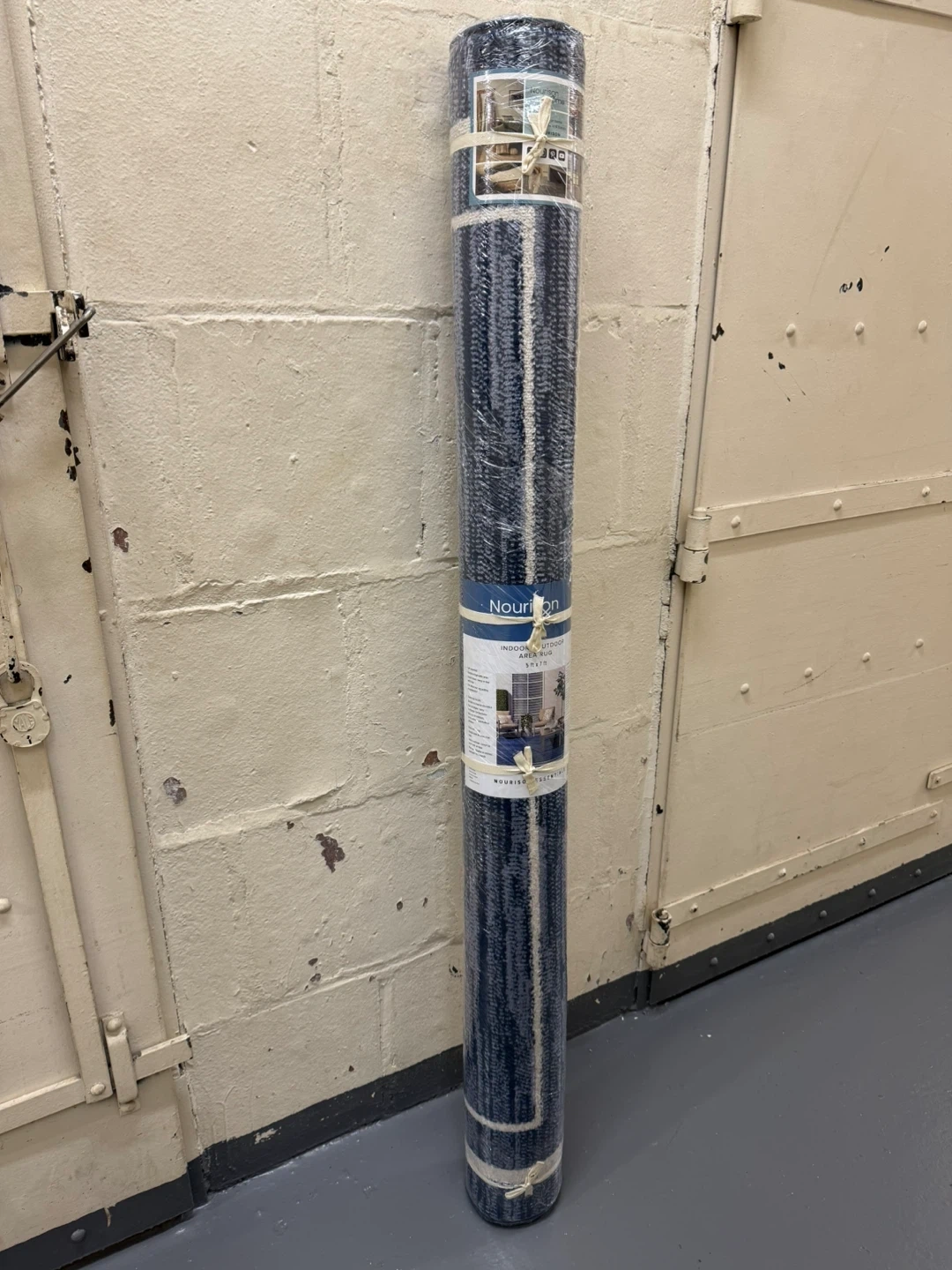 This Nourison indoor/outdoor area rug features a stylish blue and ivory design! It's made with high-quality materials and is perfect for adding a touch of elegance to any room. The rug is in great condition and ready to be used in your home