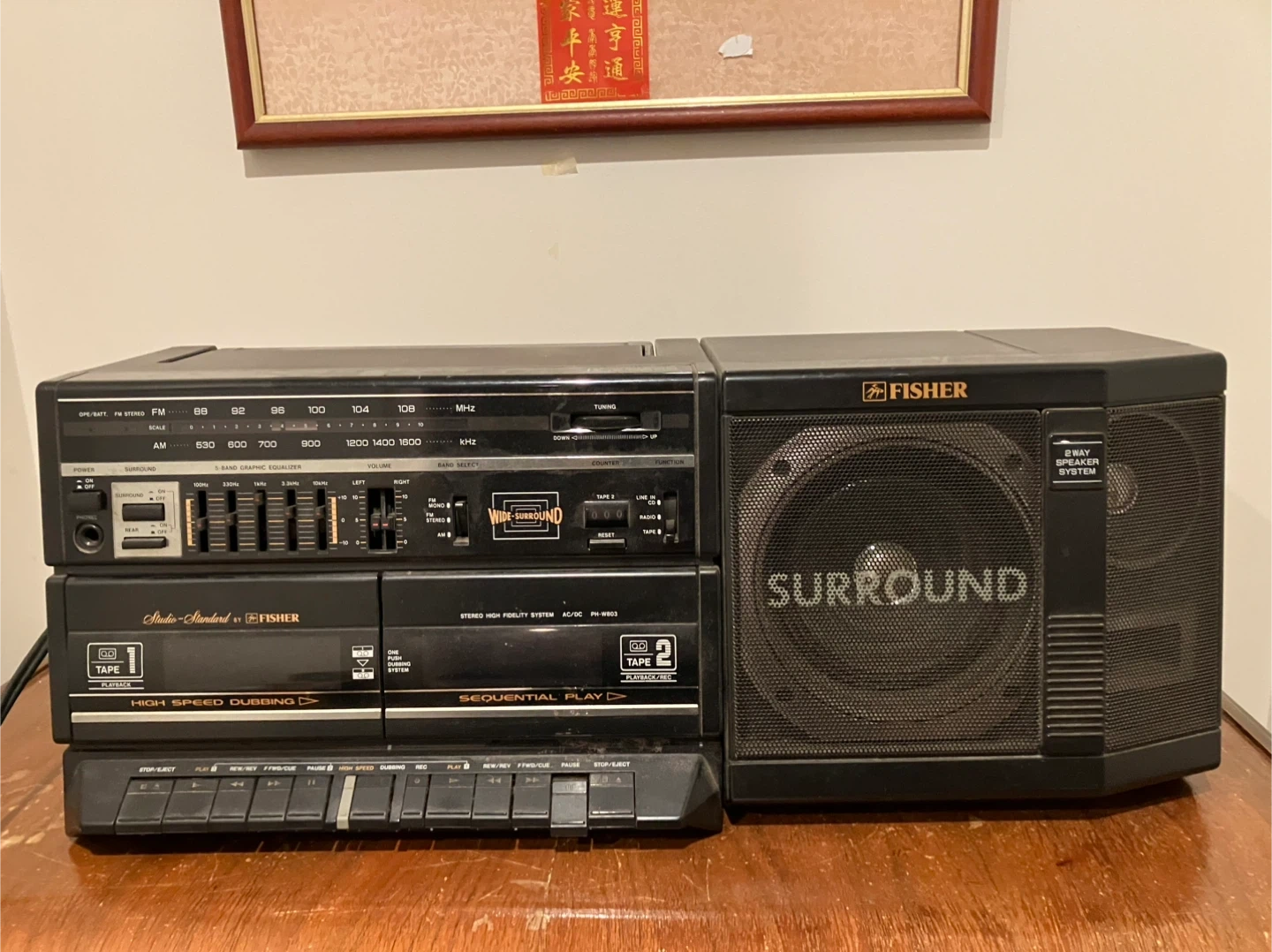 Selling a Fisher Stereo System, model PH-W880! It features a 5-way speaker system with surround sound. This stereo also has high-speed dubbing and sequential play. It's a great vintage piece for any music enthusiast