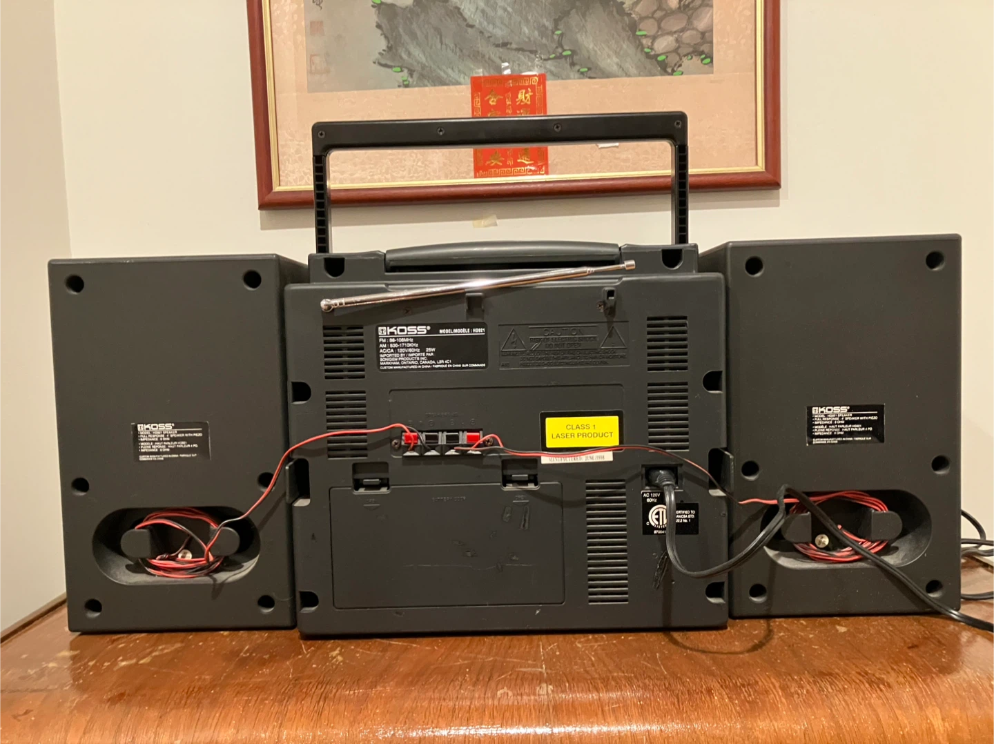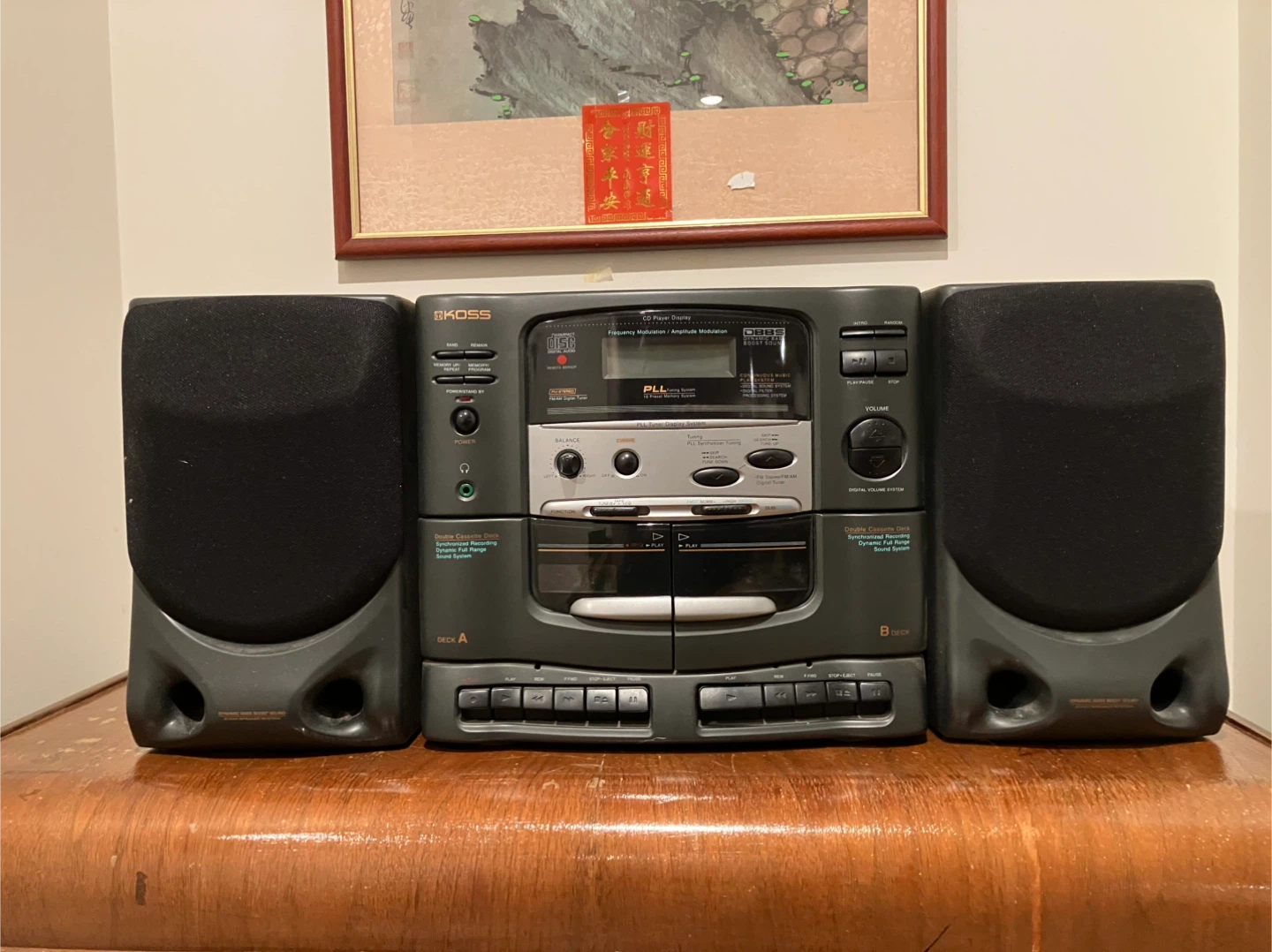Selling a Koss portable stereo system. It's in good condition and ready for a new home. Great for listening to music on the go or at home! It features a CD player, radio, and dual cassette deck.