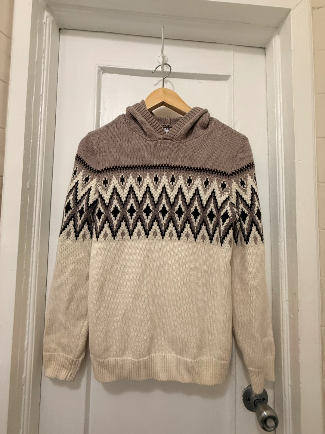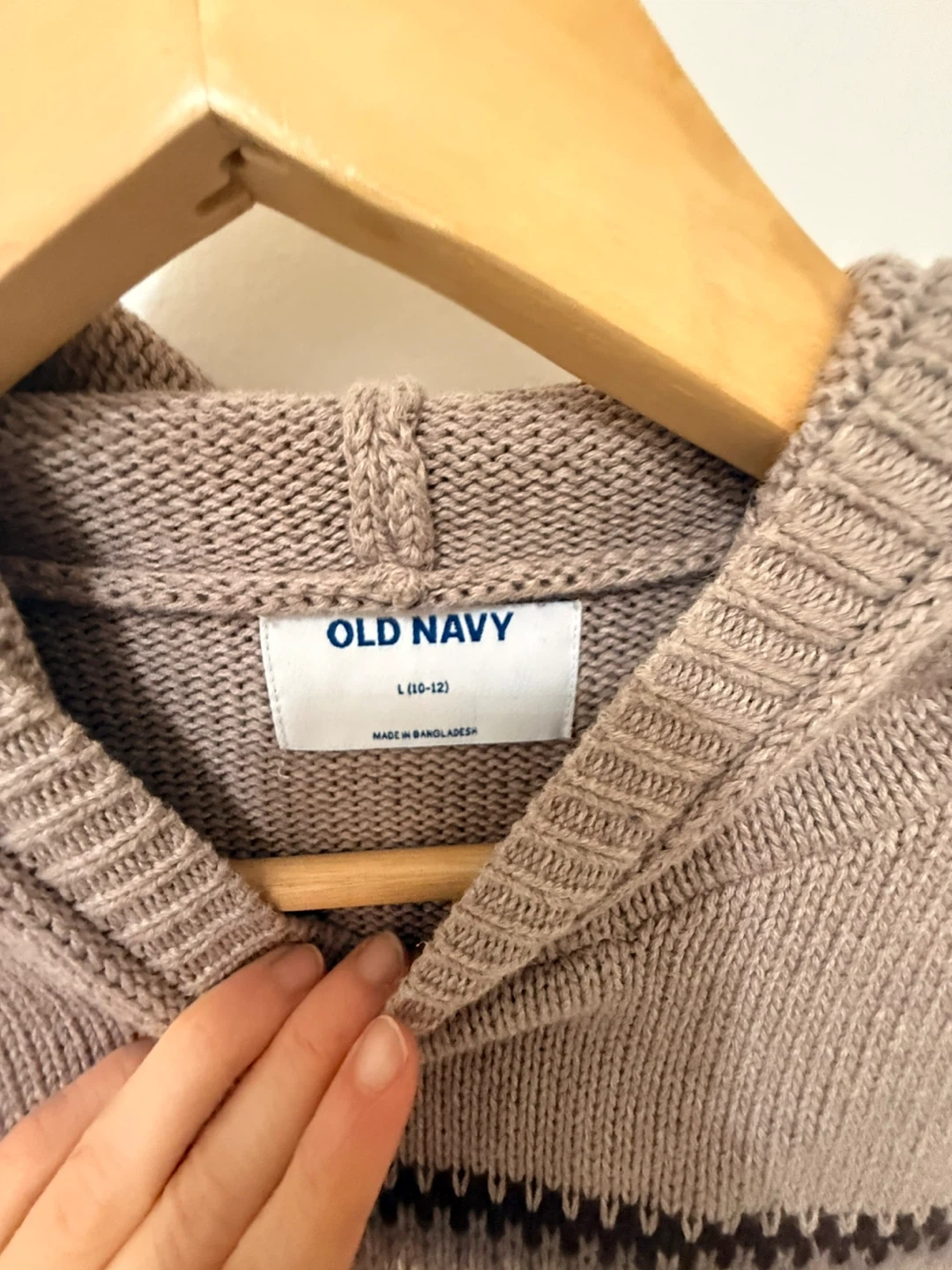 Selling a cute Old Navy sweater hoodie in size L (10-12)! It has a stylish pattern and is perfect for layering. Be aware that I didn’t wash this item, it is not dirty but not washed. No stain. It was used by me.