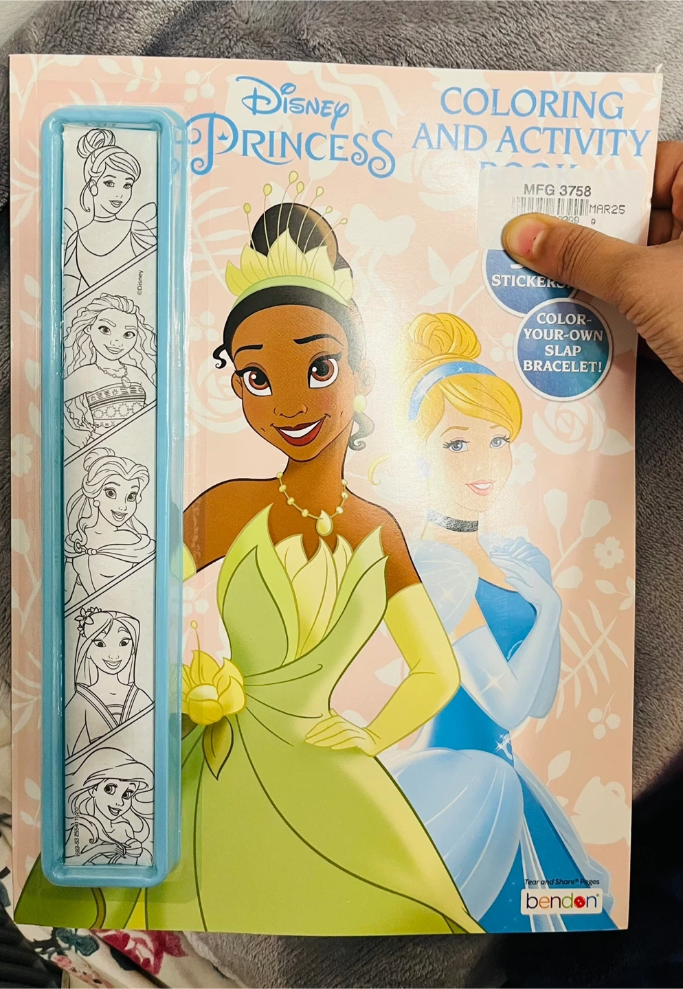 Have a Disney Princess fan? This coloring and activity book comes with stickers and a colour-your-own slap bracelet! The manufacturing date is March 2025, so it's practically brand new!
