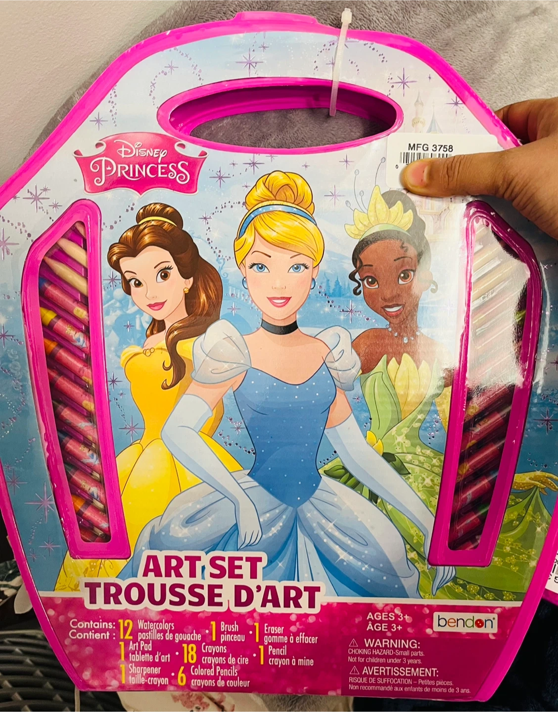 Selling a Disney Princess Art Set by Bendon! This set is perfect for ages 3+. It includes 12 watercolours, 1 art pad, 18 crayons, 1 sharpener, 6 coloured pencils, 1 brush, and 1 eraser