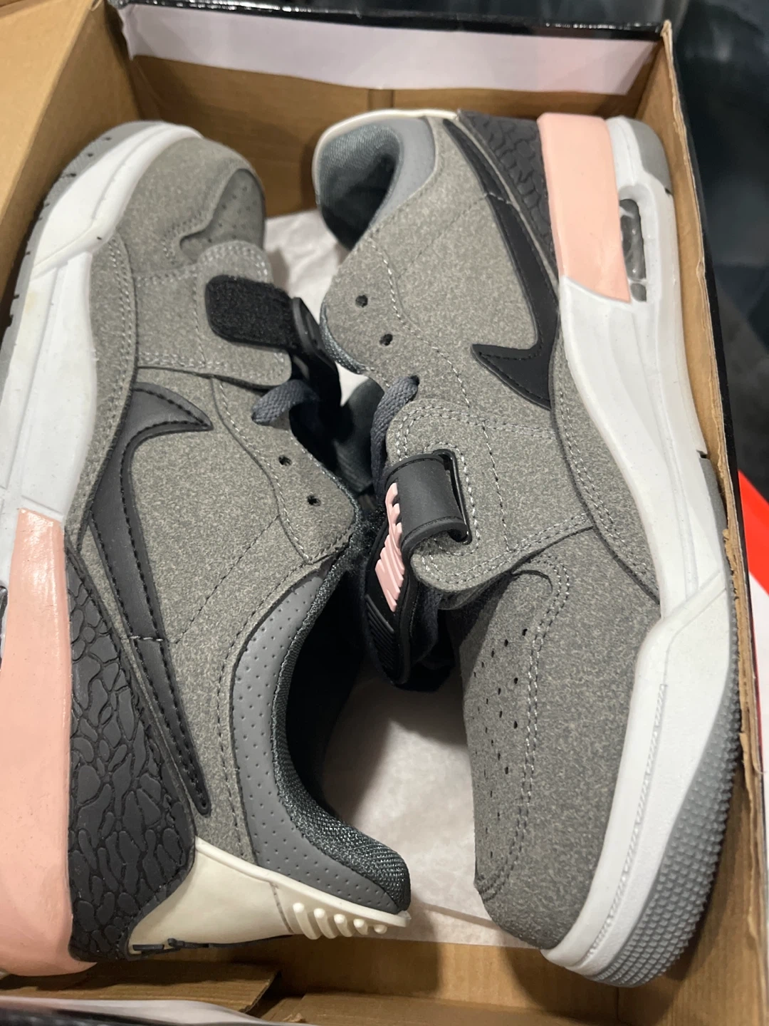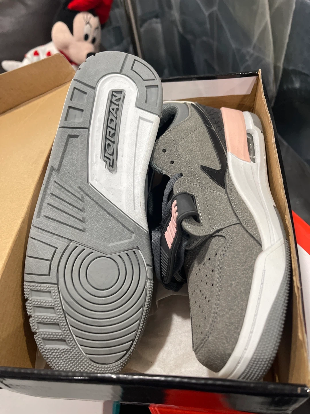 Selling a pair of Jordan 3 Retro SP shoes in size 6Y. These are in great condition and come with the original box. They feature a stylish gray colorway with pink accents. Perfect for any sneaker enthusiast!
