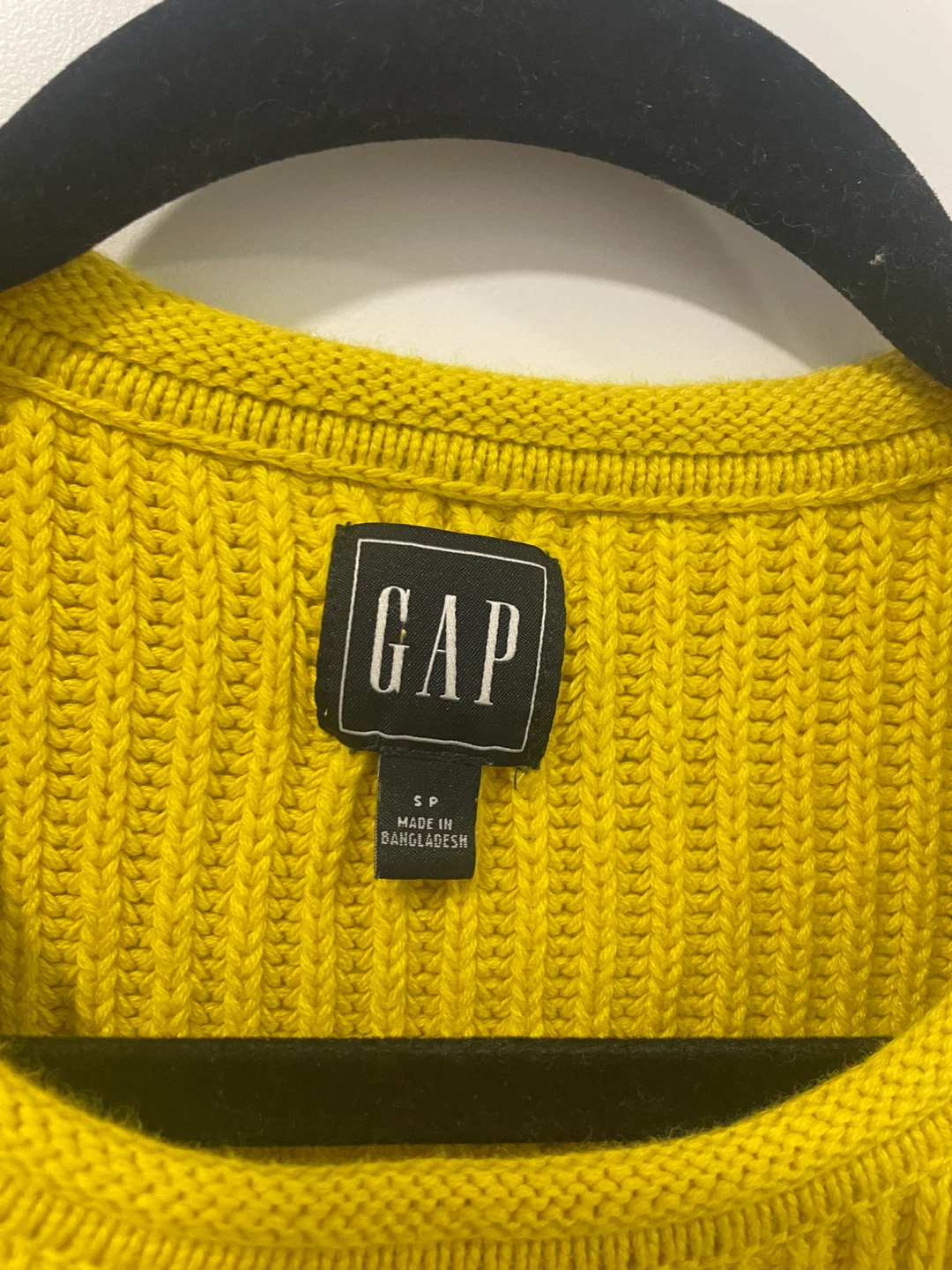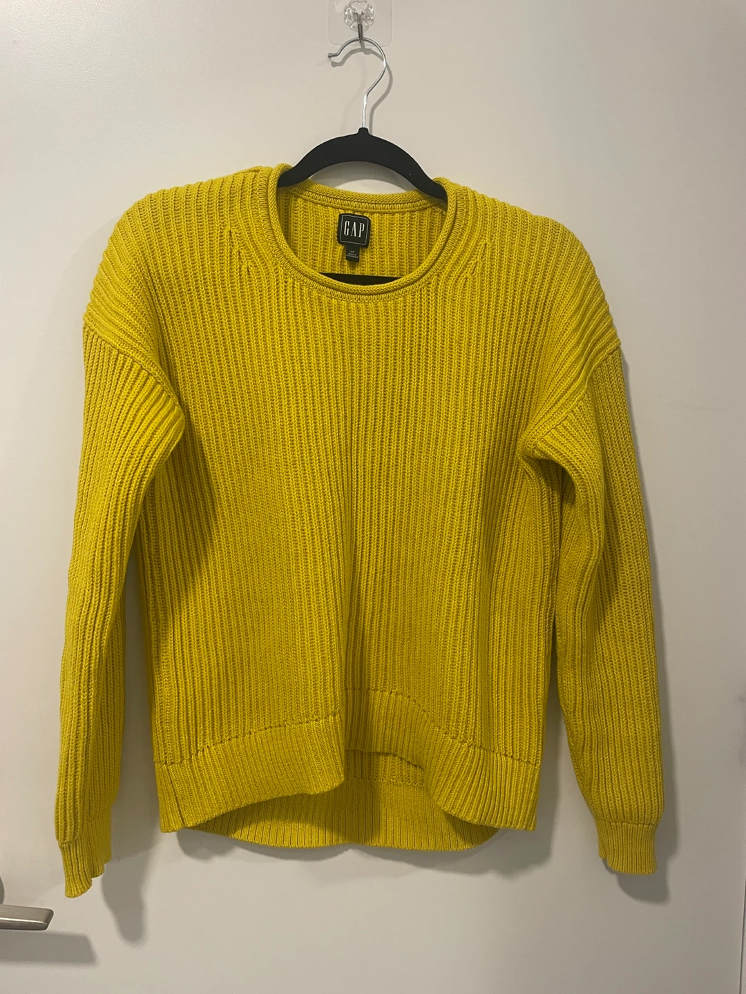 Selling a cute GAP knit sweater in a bright yellow colour! It's a size SP (small petite) and in great condition. Perfect for layering or wearing on its own!