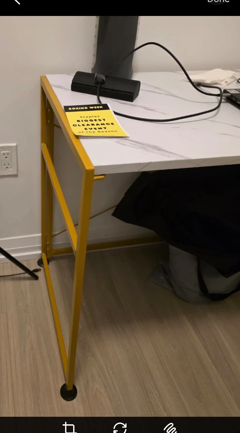 Selling an office desk, the table top can be detached and the legs can be folded if you want to store it. I do not have full picture currently as it's dismantled. No damages or scratches.