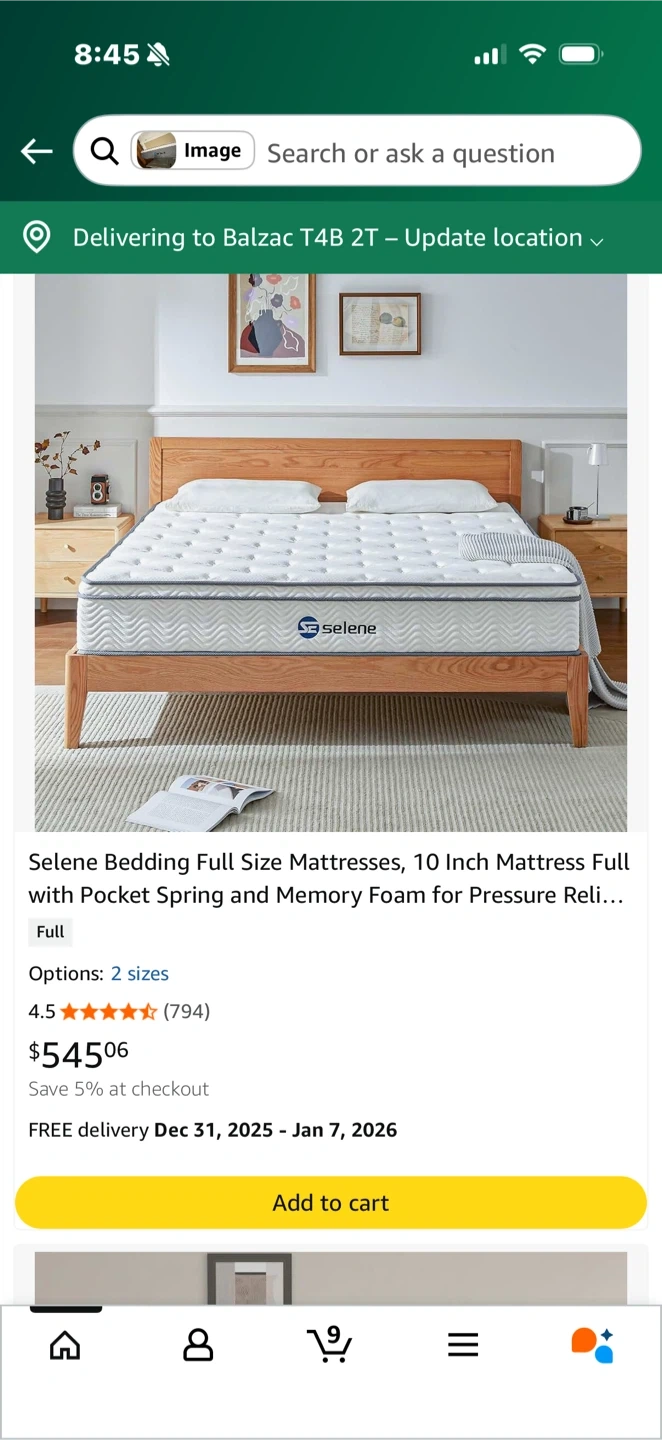 Selling a full size mattress from Selene Bedding. It's a 10 inch mattress with pocket spring and memory foam for pressure relief. Originally bought for $545.06