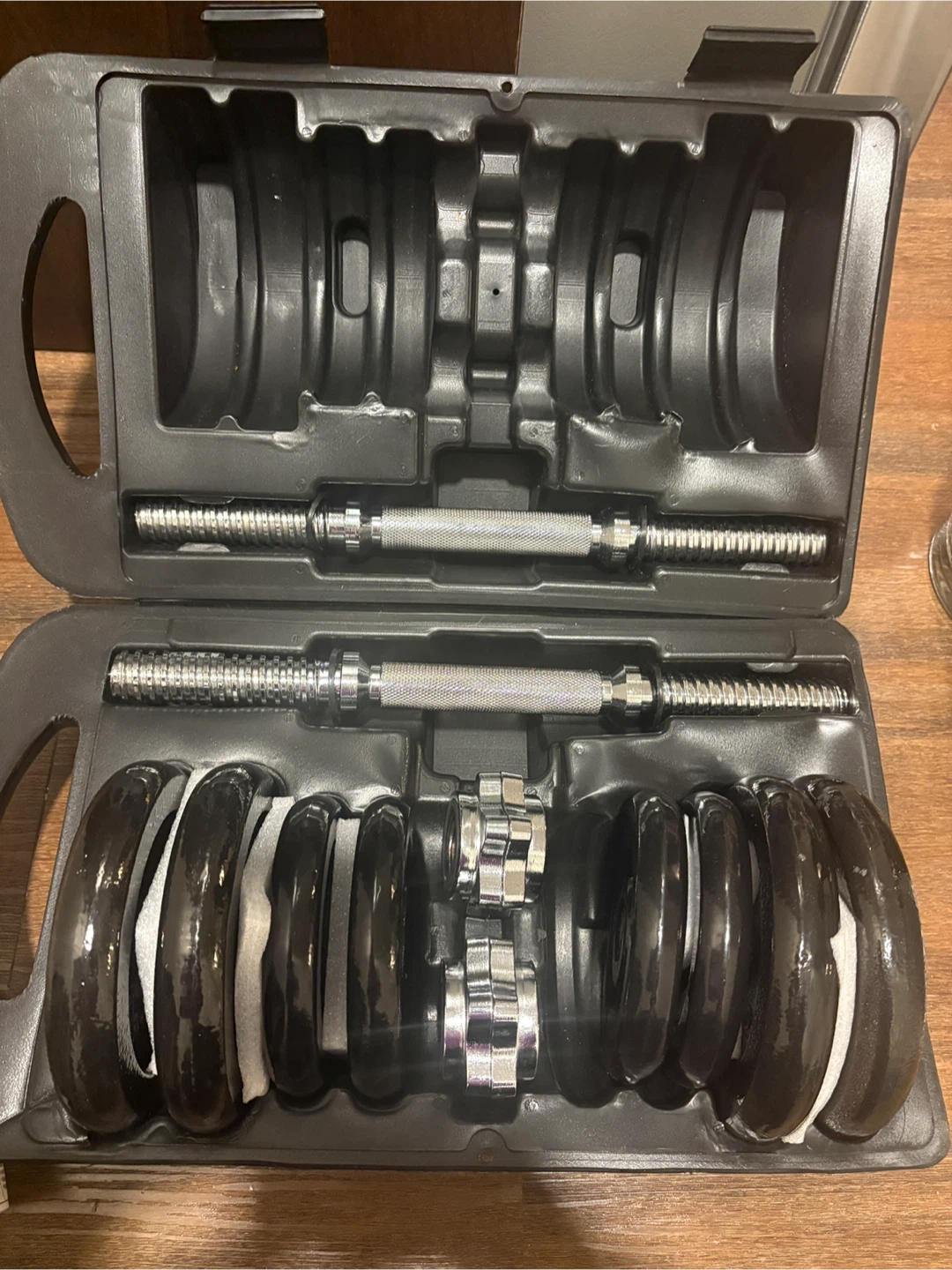 Selling a dumbbell set that comes with its own case.