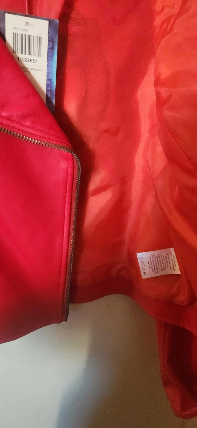 Selling a Riverdale Cheryl Serpents jacket in size large! It's a vibrant red colour and made with a shell of 100% PU and lining of 100% polyester. Originally bought for $103.90 CAD. It features the South Side Serpents logo on the back.