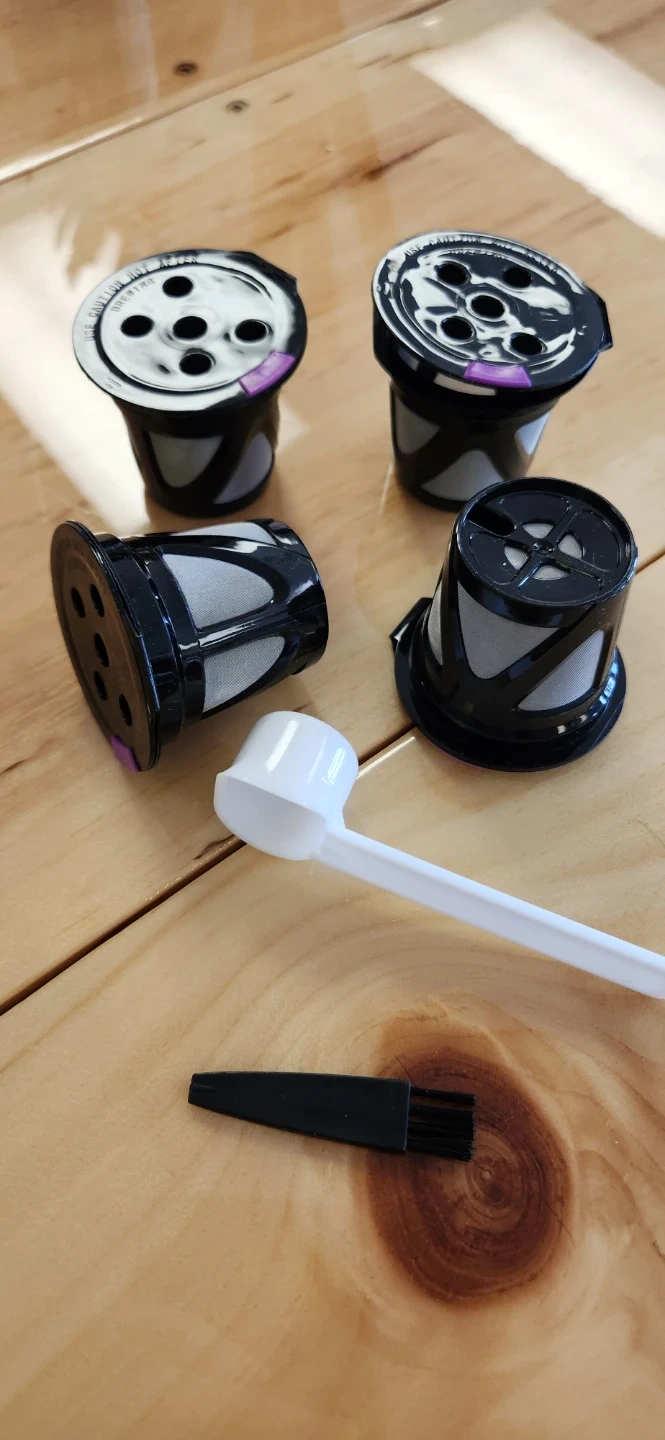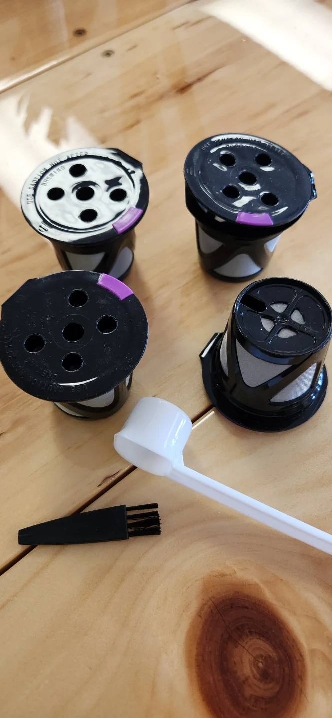 Selling a set of reusable K-Cups! They're a great way to reduce waste and save money on coffee. Included is a scoop to easily measure your coffee grounds, and a brush for cleaning the filter after use. They're in great condition and ready for a new home!